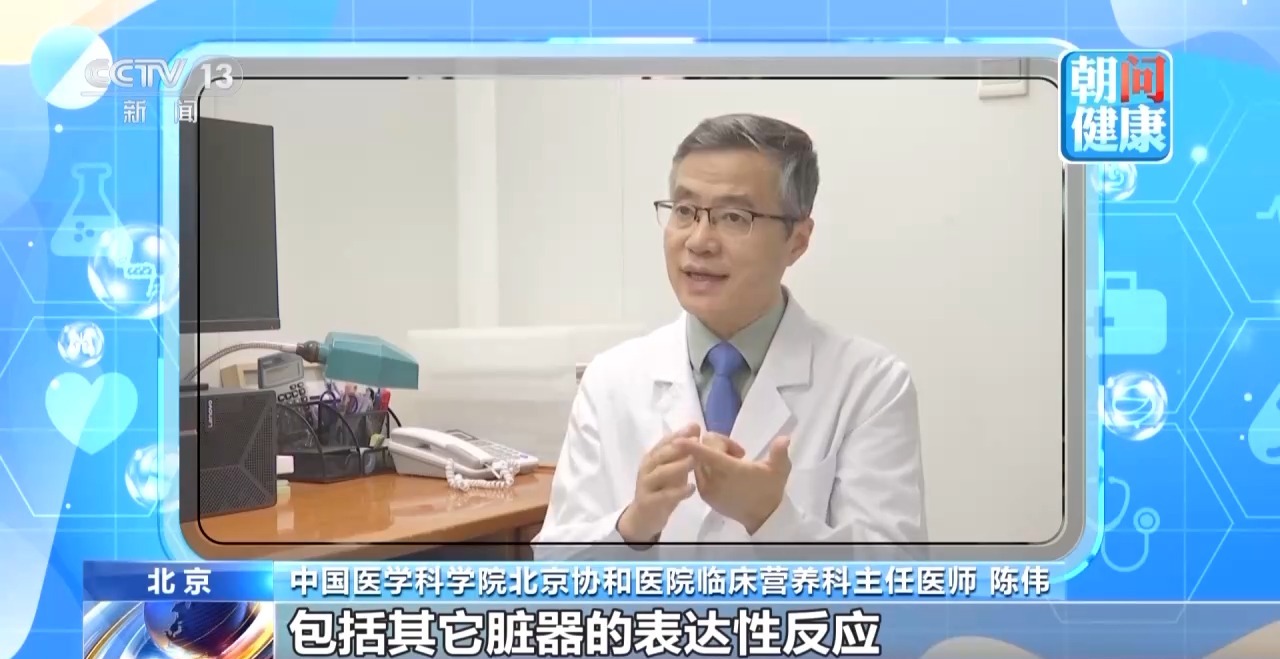 中国医学科学院北京协和医院临床营养科主任医师 陈伟:包括胃肠道的反应、其他脏器的表达性反应,而产生不良的影响,比如月经周期不来、头发掉光、便秘出现,这些情况都是对身体的损伤。