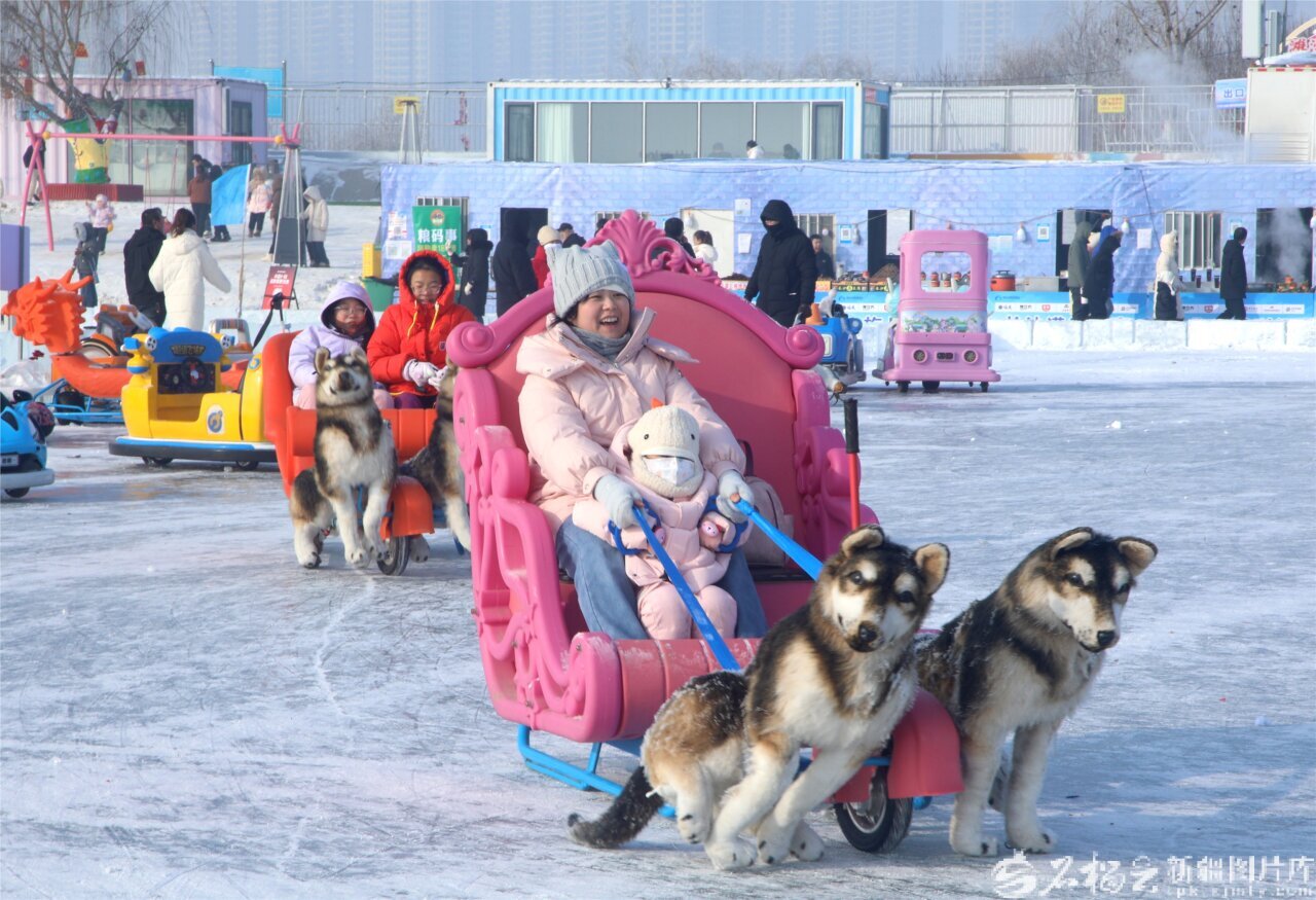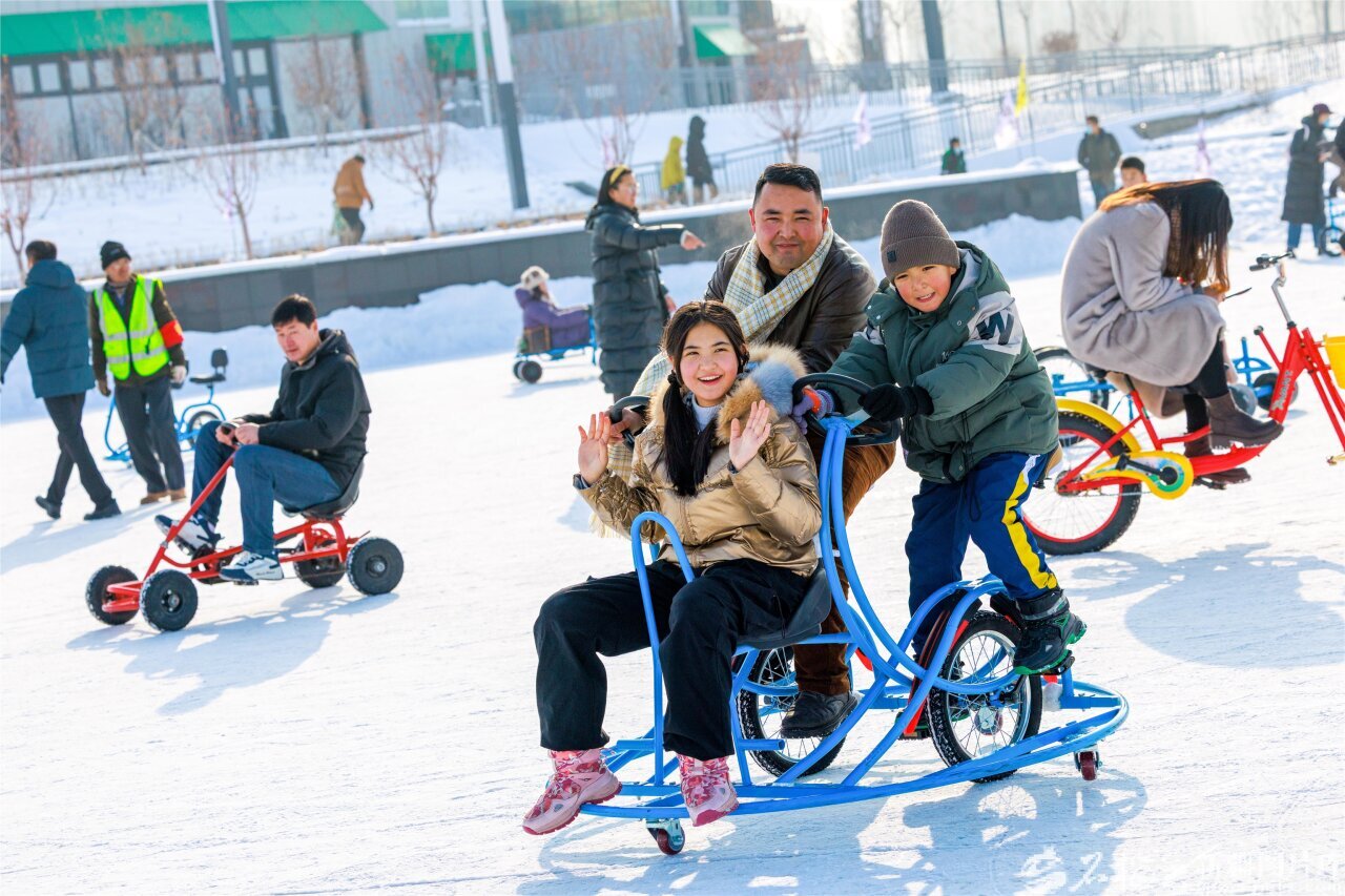 2026年1月2日,游客在青格达湖国家级旅游风景区体验冰上运动。魏新江 摄