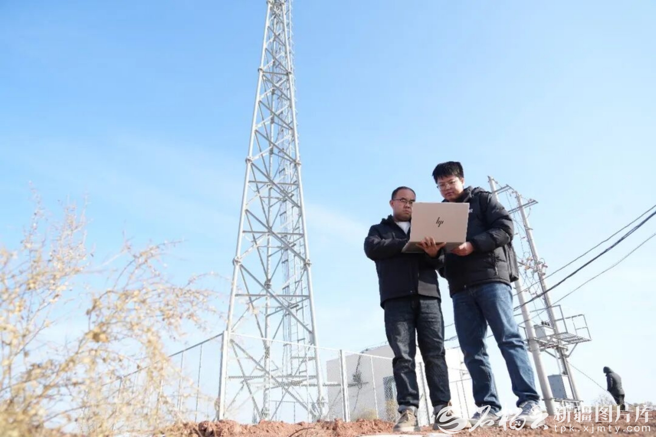 1月2日,中国移动通信集团新疆有限公司哈密市分公司网络优化工程师在兰新高铁哈密至鄯善北段一座信号塔旁调测信号。郭子毅摄
