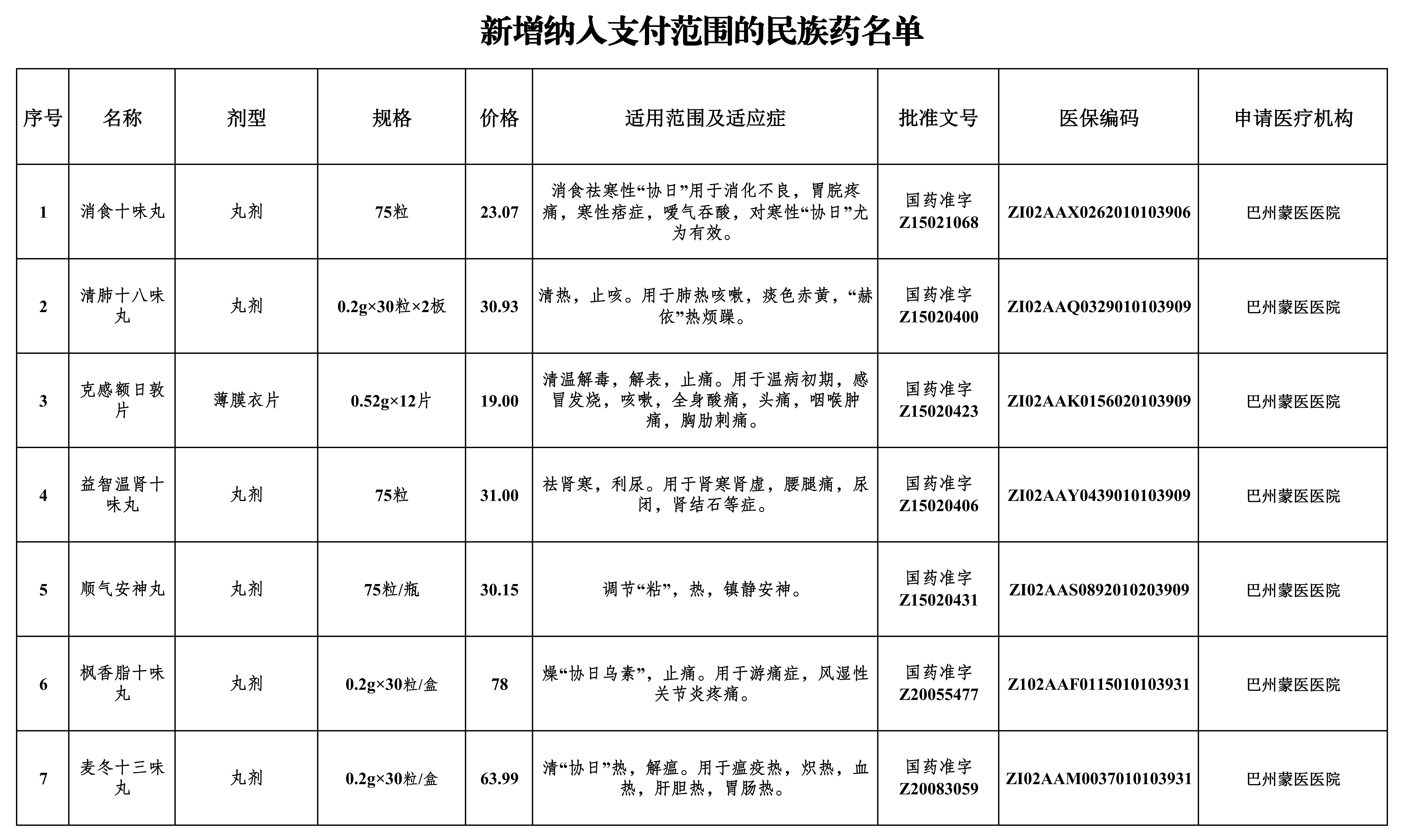 A+ A. A-1月6日,自治区医疗保障局网站发布通知,自2月1日起,将消食十味丸等7个民族药、润肺阿里红片等24个医疗机构制剂纳入自治区、兵团基本医疗保险、生育保险和工伤保险支付范围。