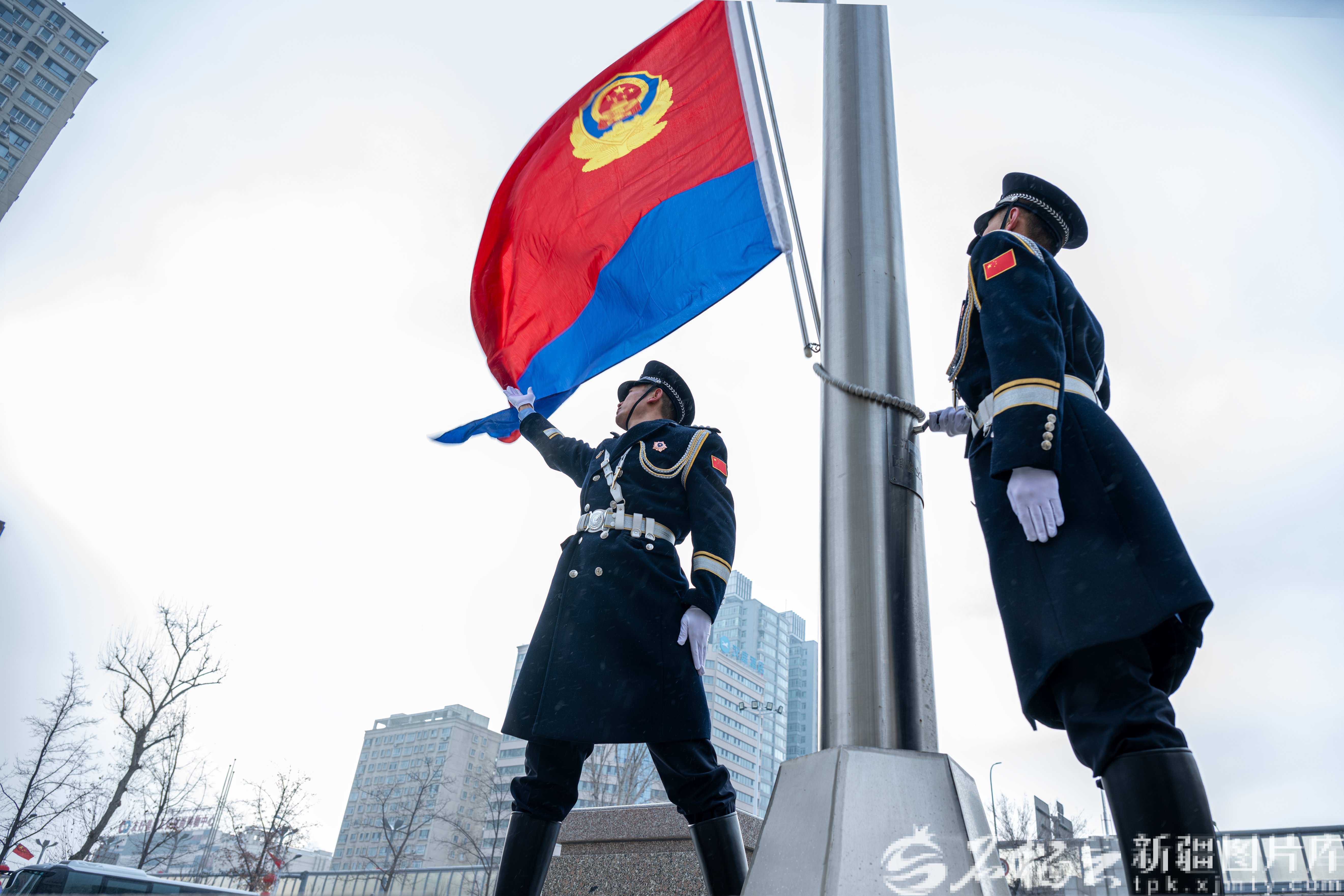 1月10日上午,自治区公安厅举行庆祝第六个中国人民警察节升警旗仪式。王晨摄