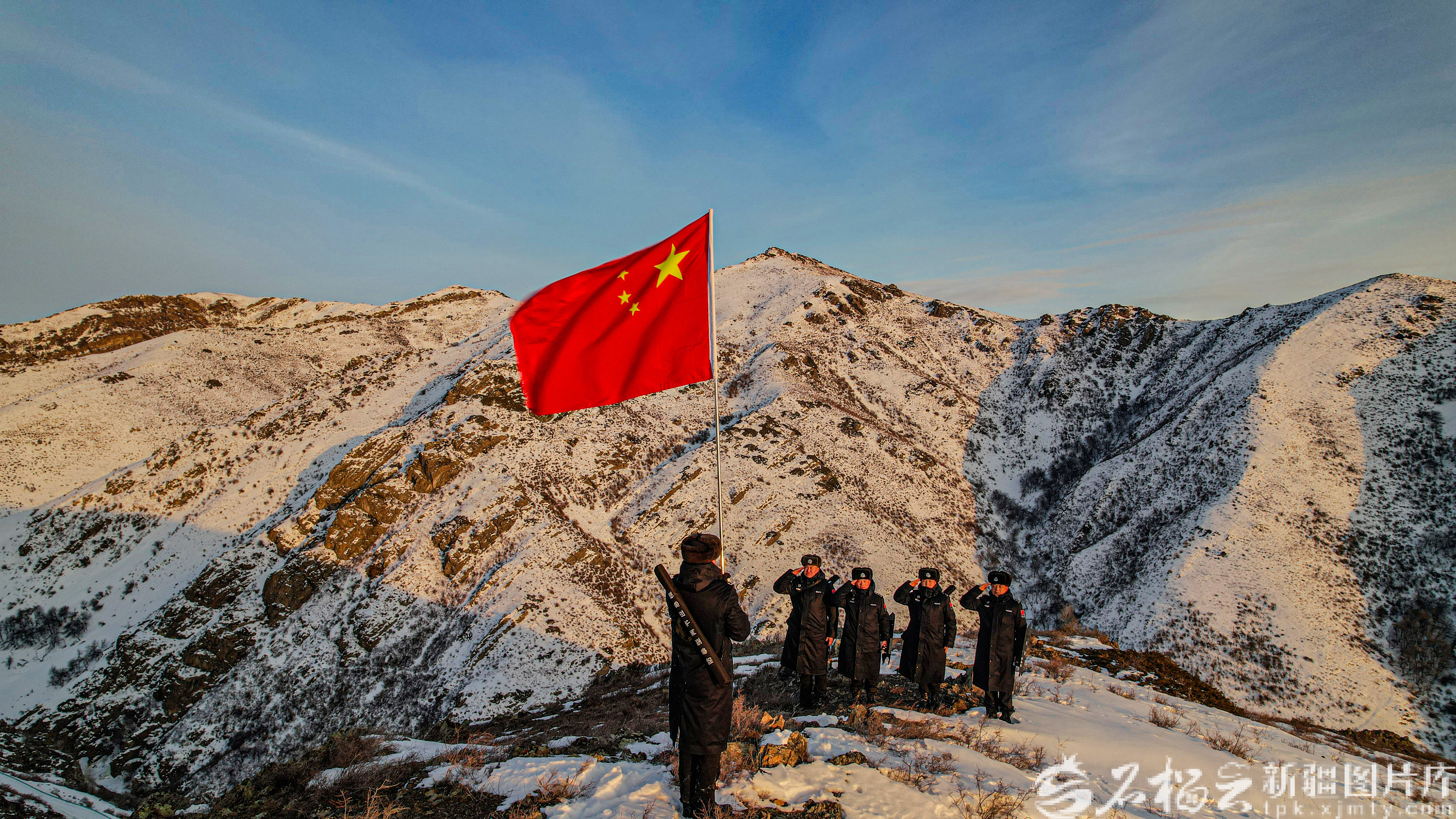 1月8日,塔城边境管理支队铁列克特边境派出所民警在巡边路上向国旗敬礼。郭宝成摄