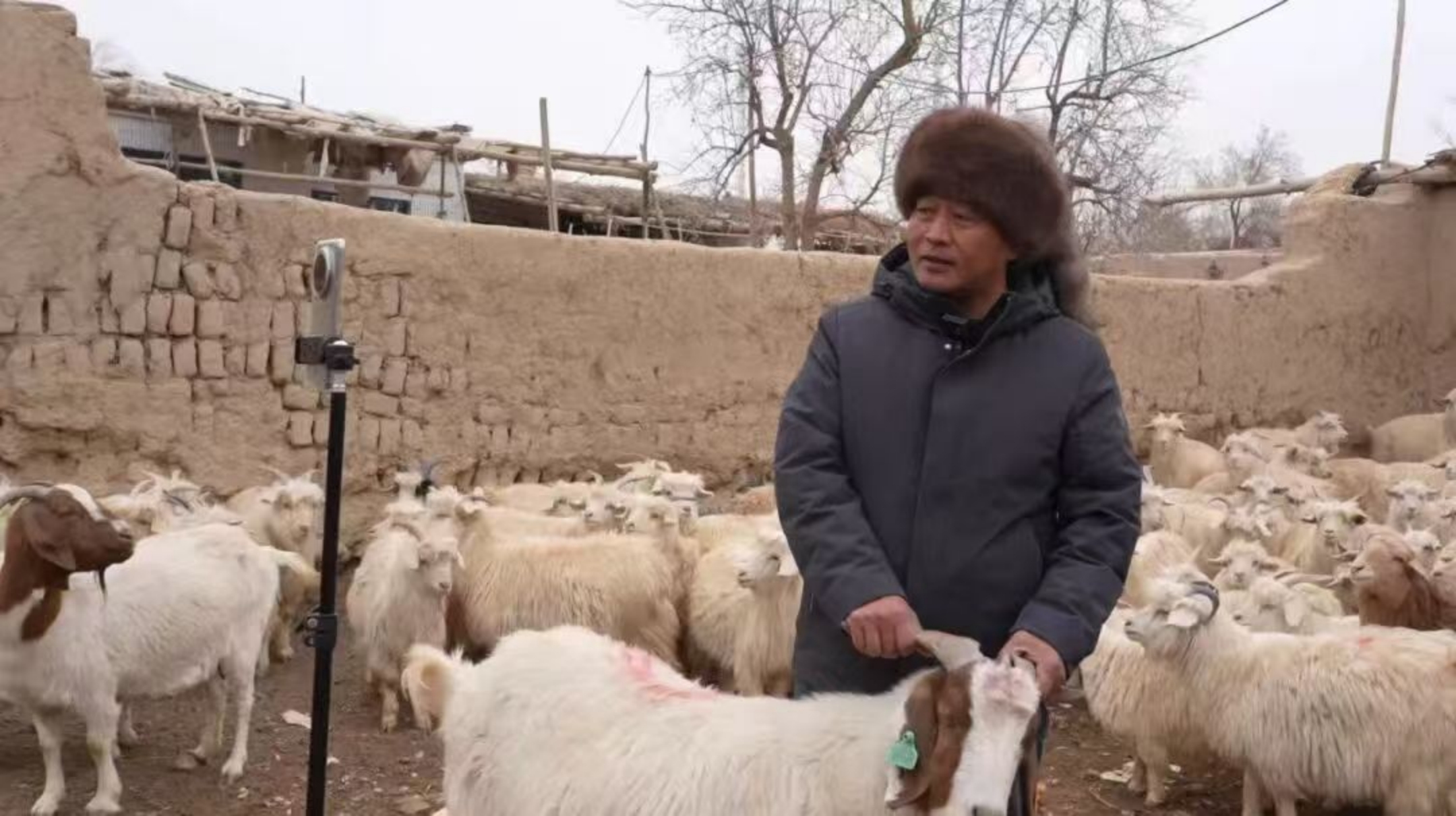 哈密市伊州区高山牧场出产的“冰碴驹俐”俏销全国各地。图为2025年12月10日,哈密市农民网红秦大鹏向网友介绍“冰碴驹俐”。马晶晶 摄
