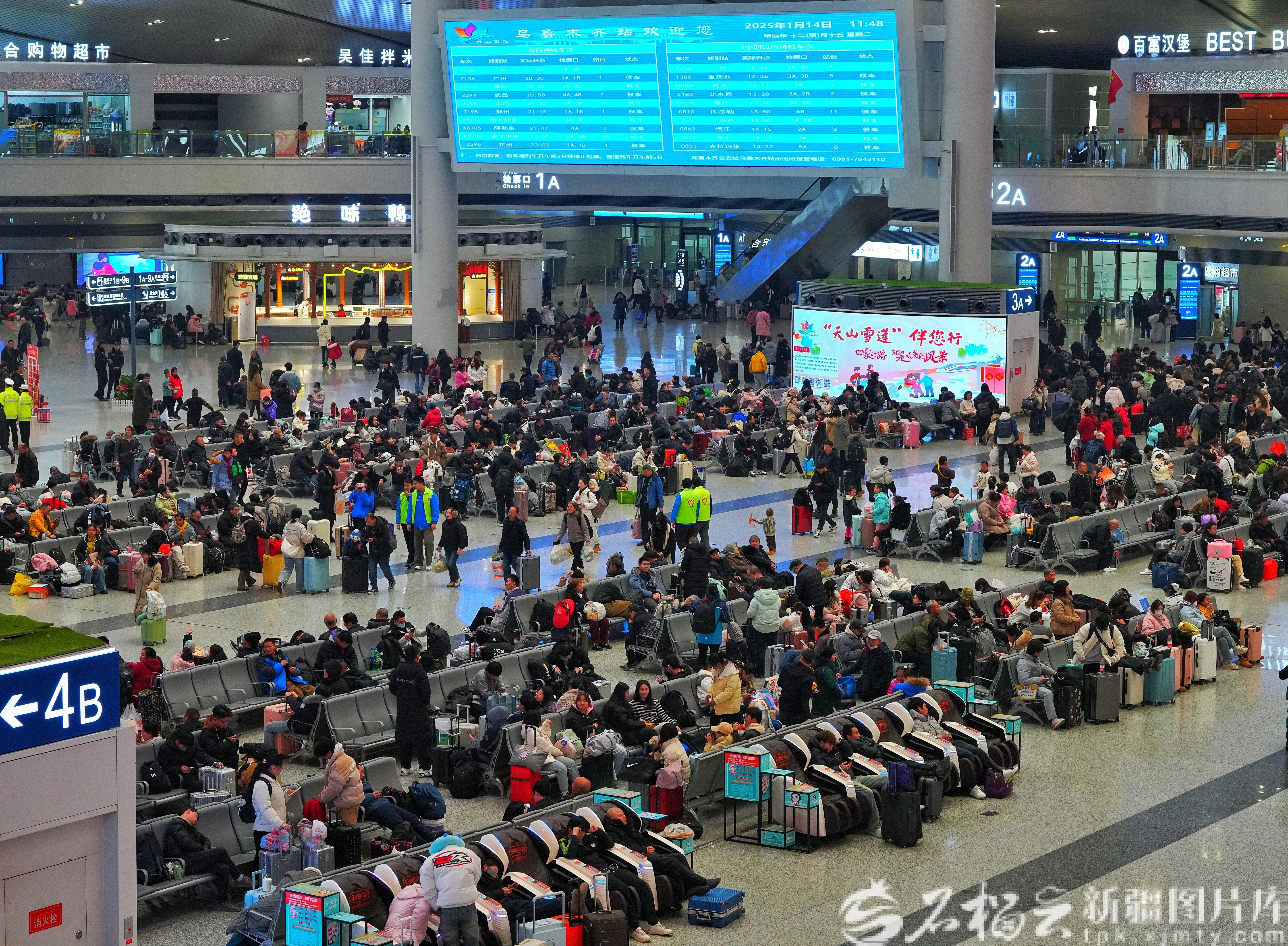 旅客在乌鲁木齐站候车厅候车。摆风亮摄