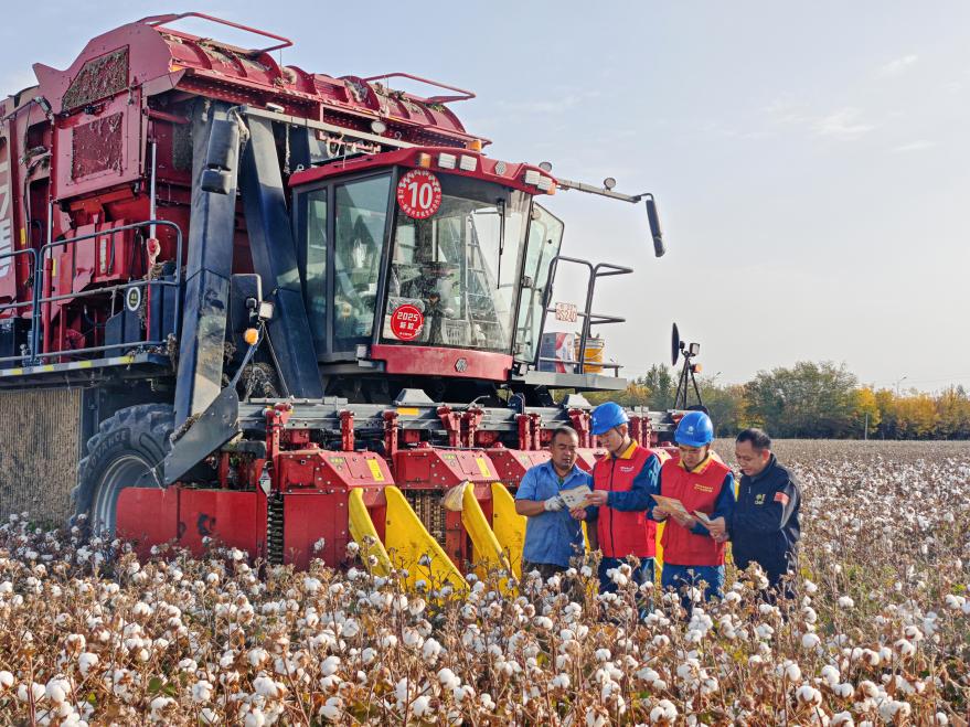 党员服务队深入兵团第十三师新星市红星一场棉田,开展安全用电宣传。(吕梦璠 摄)