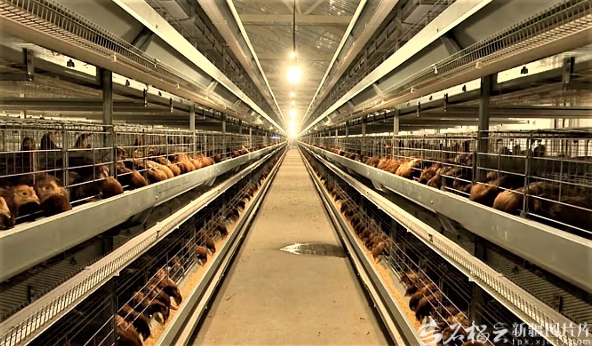 1月21日,奇台县科禽禾蛋鸡养殖有限公司智能化养鸡场,一排排鸡笼整齐排列。谢甜摄
