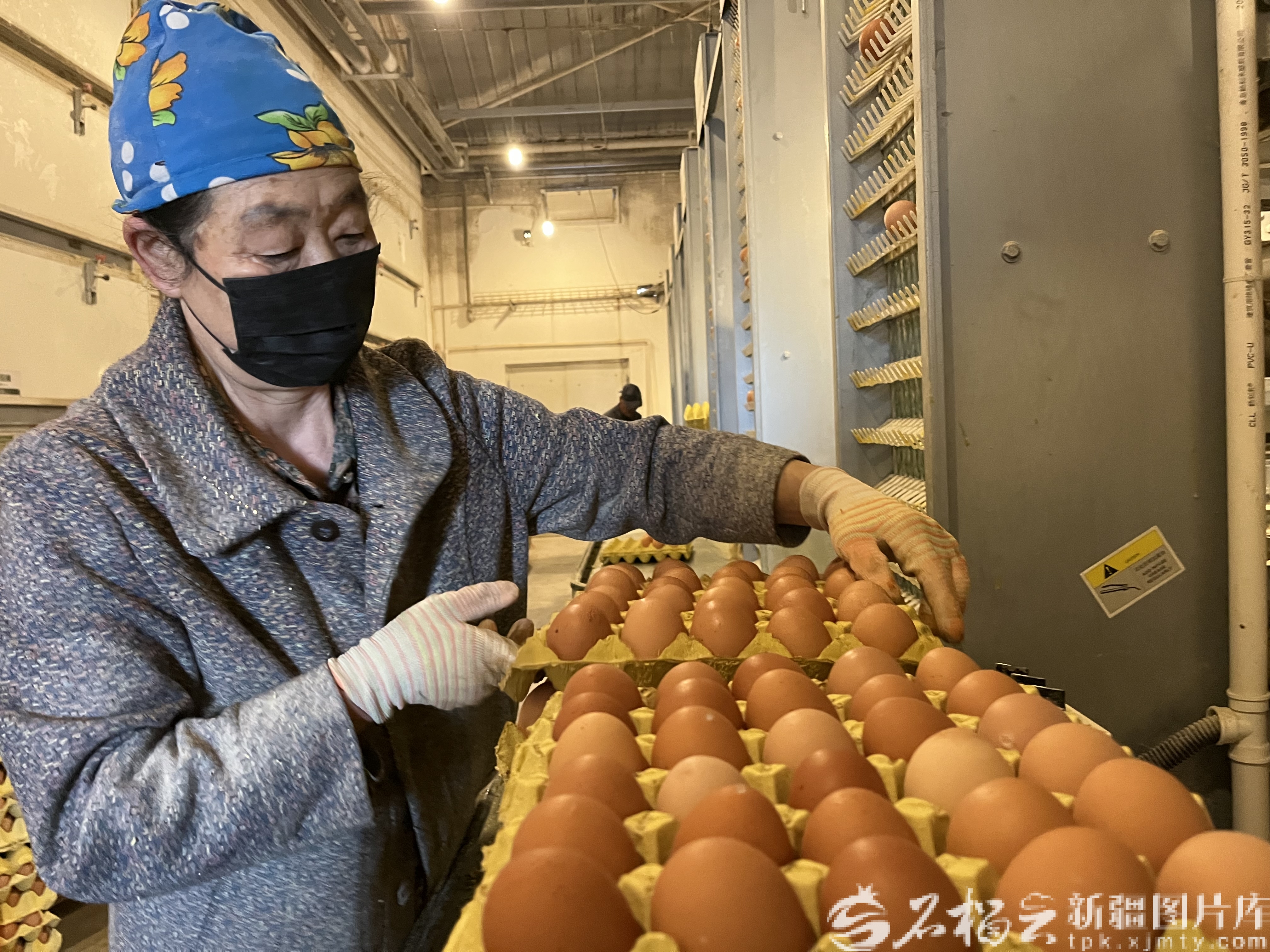 1月21日,在奇台县科禽禾蛋鸡养殖有限公司智能化养殖场,员工正在分装鸡蛋。谢甜摄
