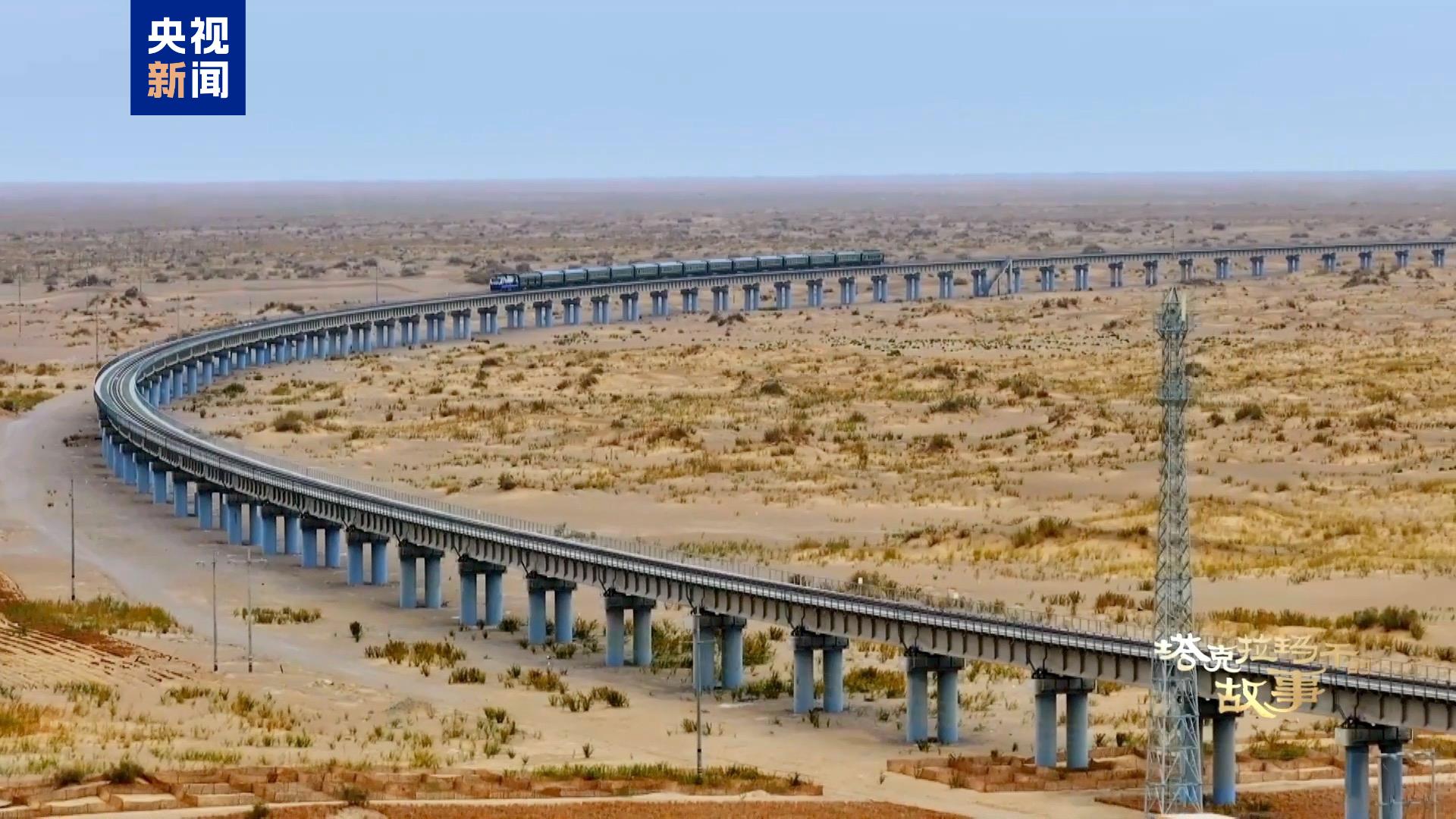 是2712公里铁轨包围出的世界首条环沙漠铁路,沙漠里流动更快的,不是沙,而是货物和人员。