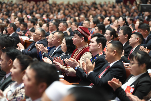 1月27日,自治区十四届人大四次会议在新疆人民会堂开幕。图为会议现场。石榴云/新疆日报记者 汤永摄