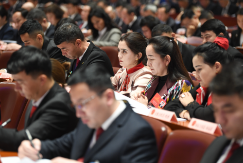 1月27日,自治区十四届人大四次会议在新疆人民会堂开幕。图为会议现场。石榴云/新疆日报记者 李瑞摄