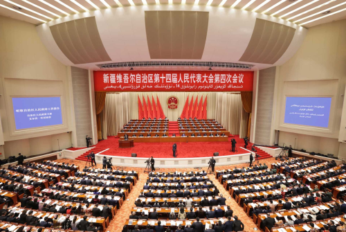 1月27日,自治区十四届人大四次会议在新疆人民会堂开幕。图为会议现场。石榴云/新疆日报记者 汤永摄