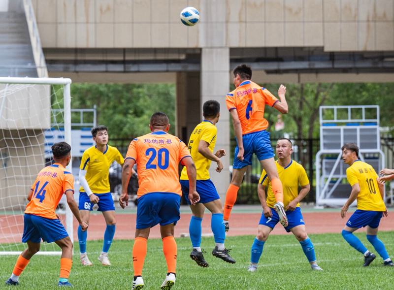 2025年“石榴籽杯”新疆群众“三大球”联赛昌吉赛区足球决赛在昌吉体育场开赛(2025年6月15日摄)。何龙摄