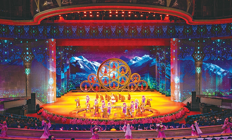 大型室内实景民族歌舞秀《千回西域》在新疆大剧院上演(2025年10月1日摄)。何龙摄