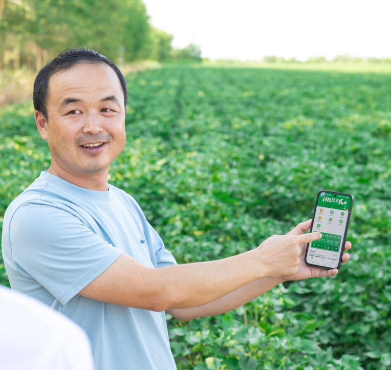 呼图壁县大丰镇红柳塘村棉农借助智能水肥一体化平台,通过手机操作完成棉花浇水与施肥工作(2025年8月3日摄)。何龙摄