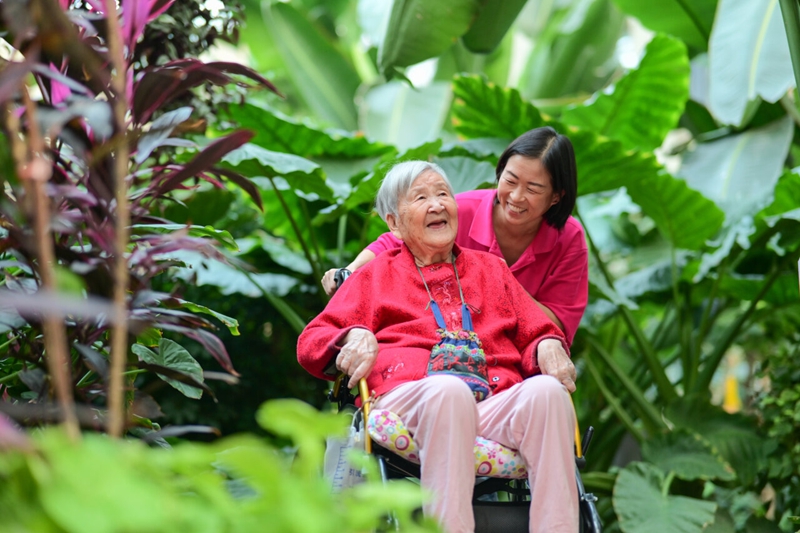 在昌吉市厚德康养家园,工作人员陪老人聊天(2025年12月9日摄)。 □陶维明摄