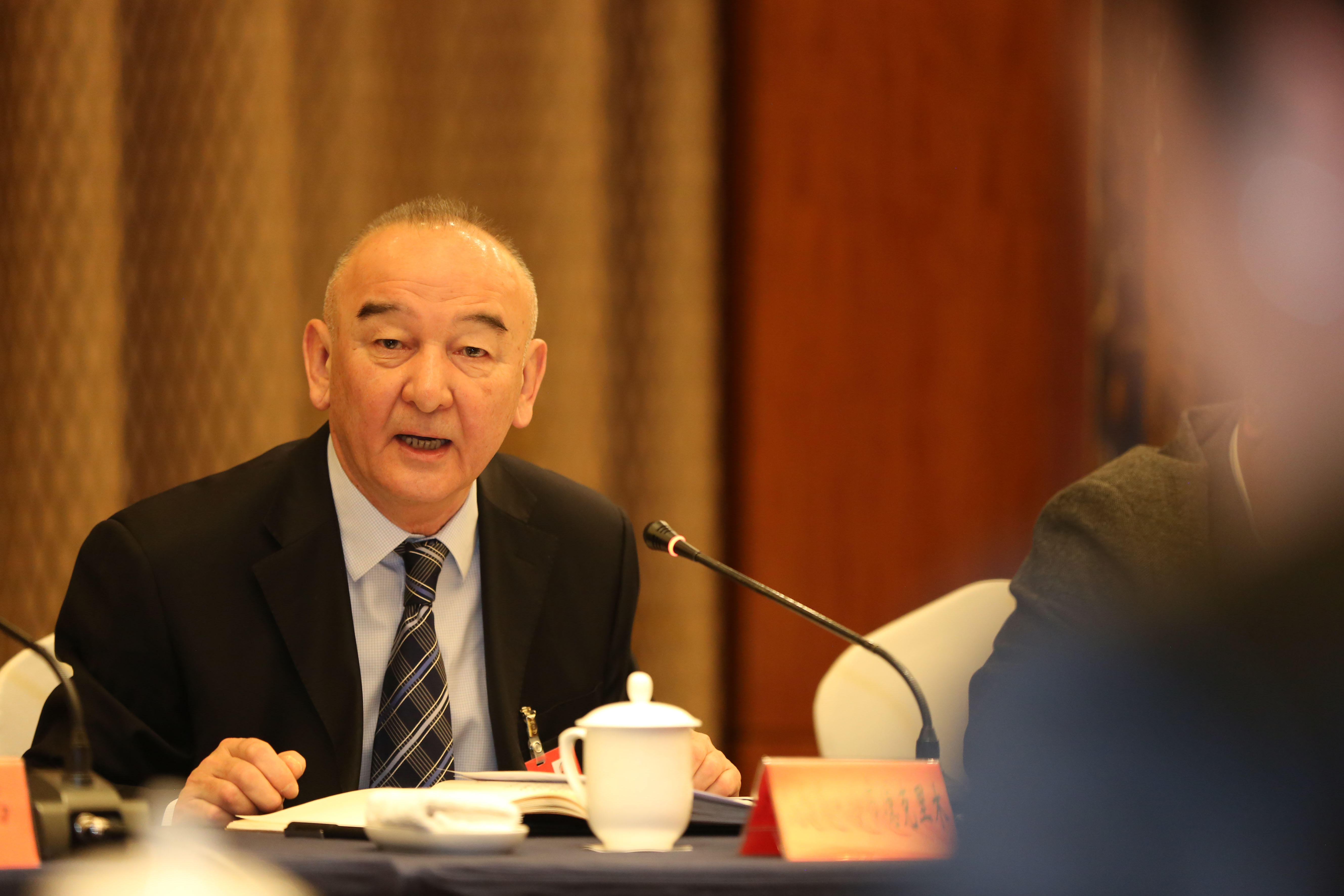 1月28日,哈尔肯·哈布德克里木代表在参加塔城地区代表团审议时,就强化生态环境执法检查与天山北坡经济带大气污染治理发言。石榴云/新疆日报记者 蔡增乐摄