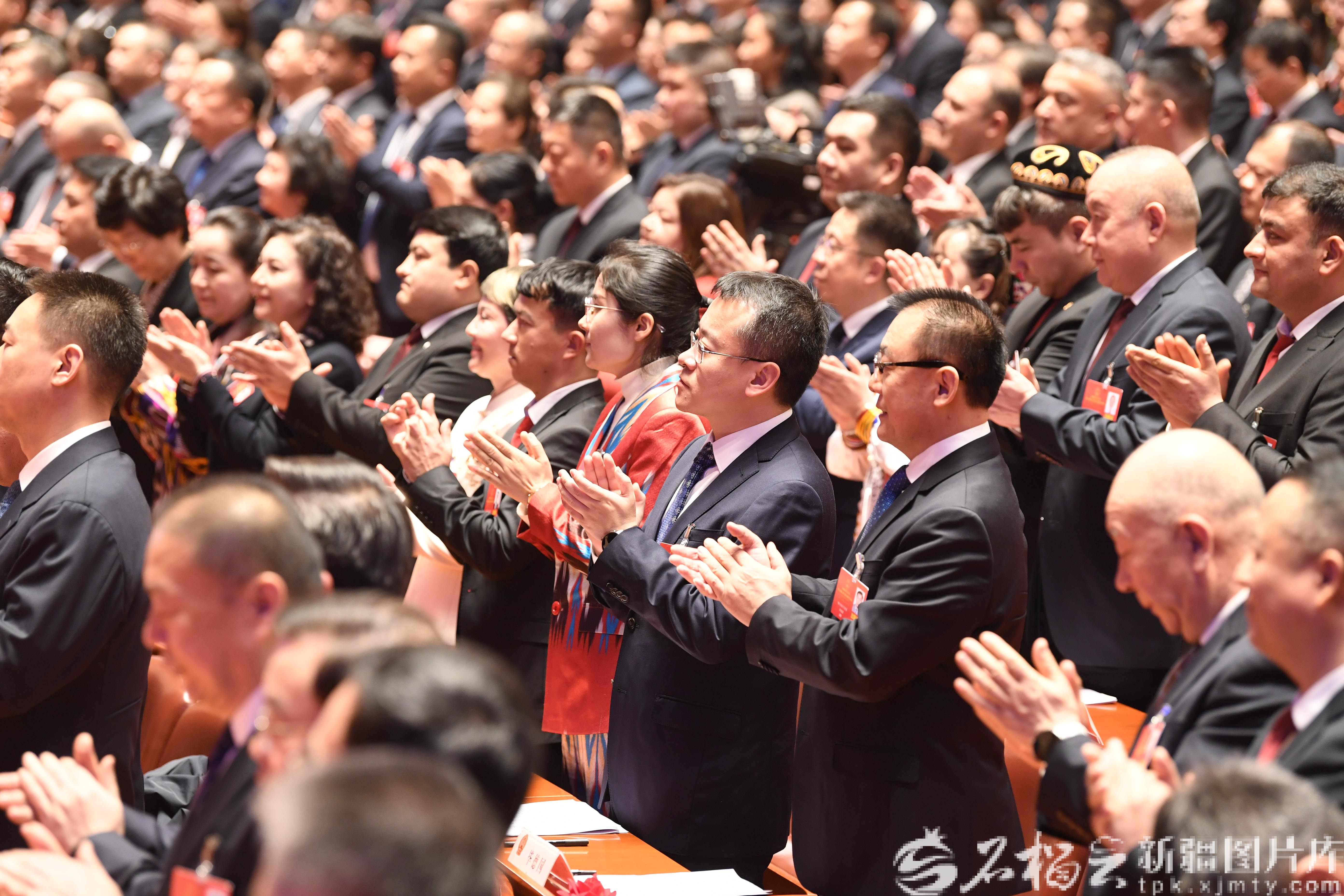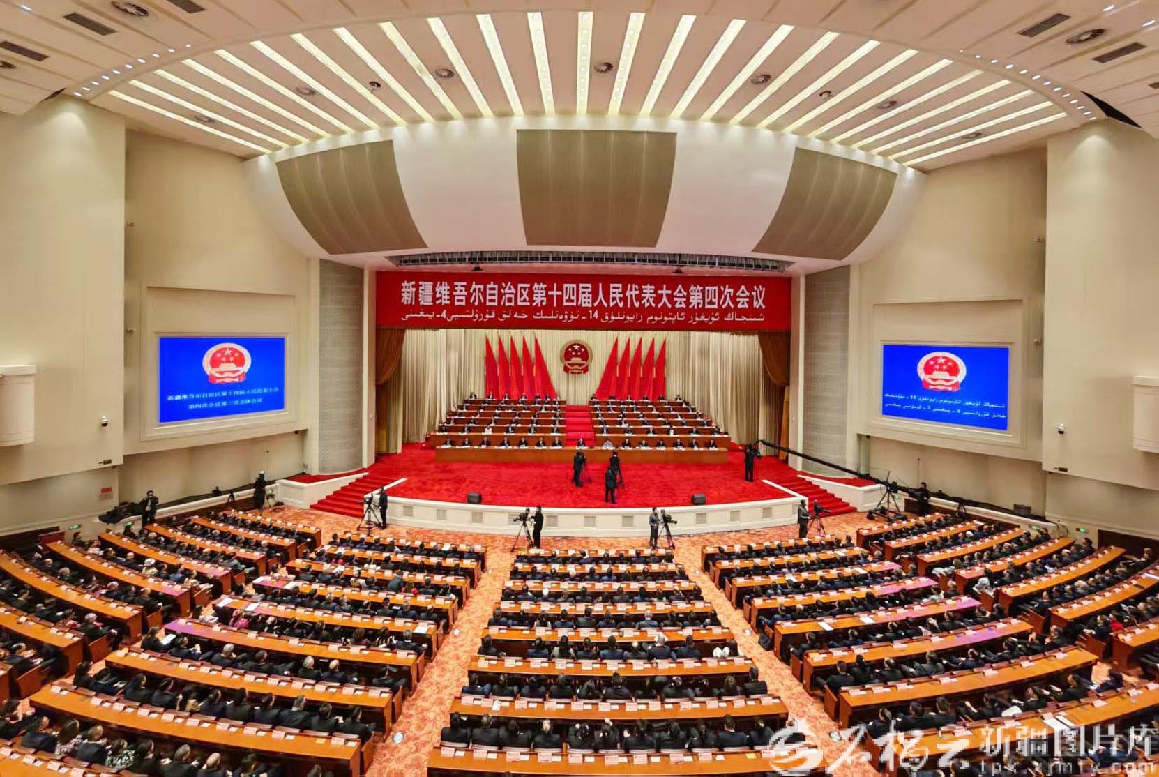 1月31日,自治区十四届人大四次会议圆满完成各项议程,在新疆人民会堂举行闭幕会。石榴云/新疆日报记者 汤永摄