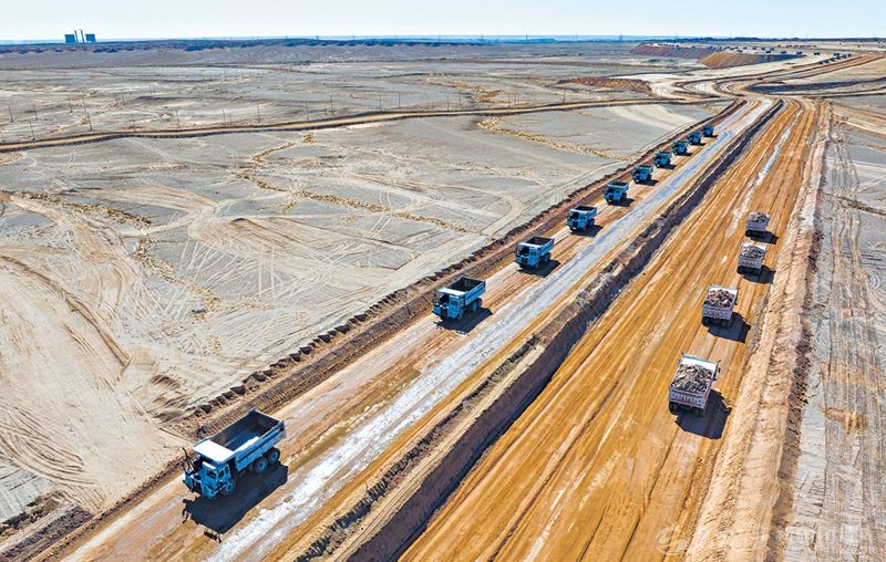 无人驾驶矿卡在新疆宜化矿业有限公司五彩湾矿区一号露天煤矿运送剥离土方。资料图