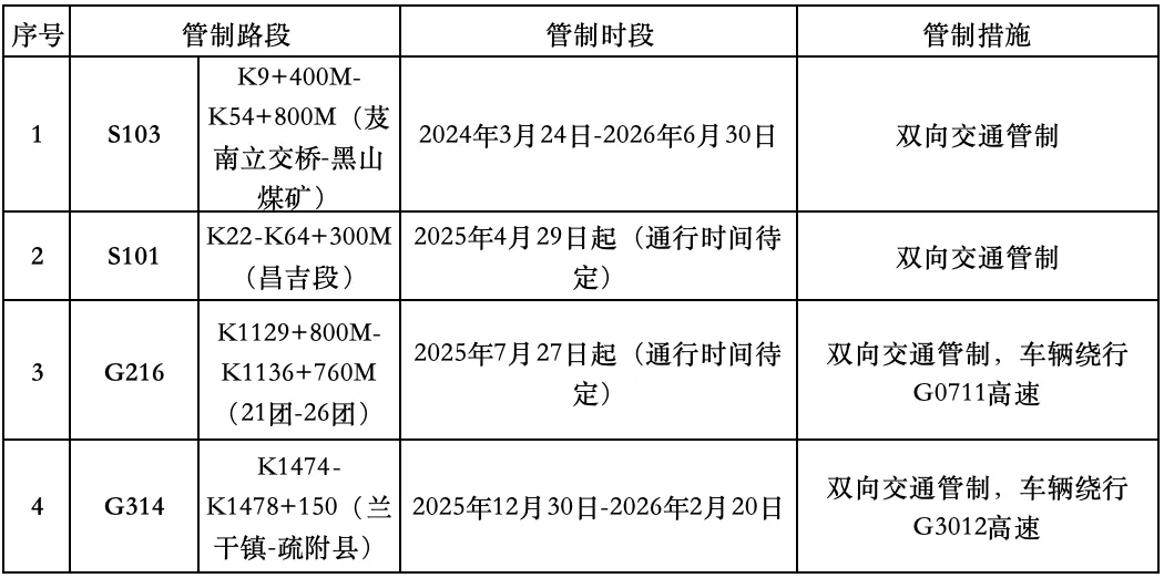 冬季封闭路段