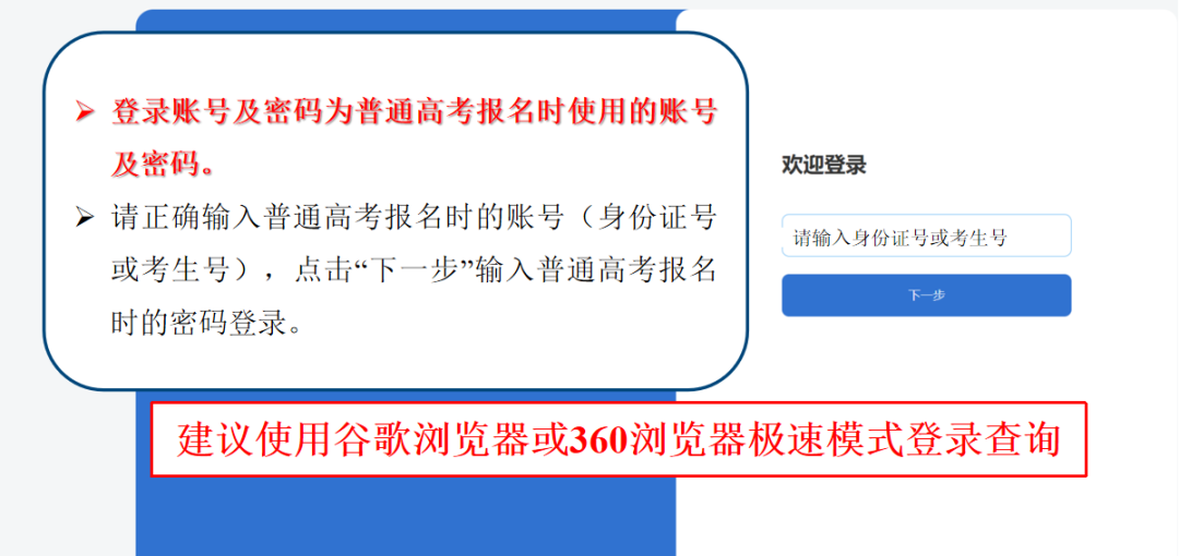 届时,考生可登录新疆教育考试院官方网站(https://www.xjzk.gov.cn,下同),在“公众服务大厅”栏目中点击“成绩查询”,进入“新疆普通高考艺术类专业统一考试成绩查询”系统,正确输入普通高考报名时的账号(身份证号或准考证号),点击“下一步”输入普通高考报名时的密码登录,查询本人专业统考成绩及位次(登录、查询流程详见图片),并自行打印成绩单。