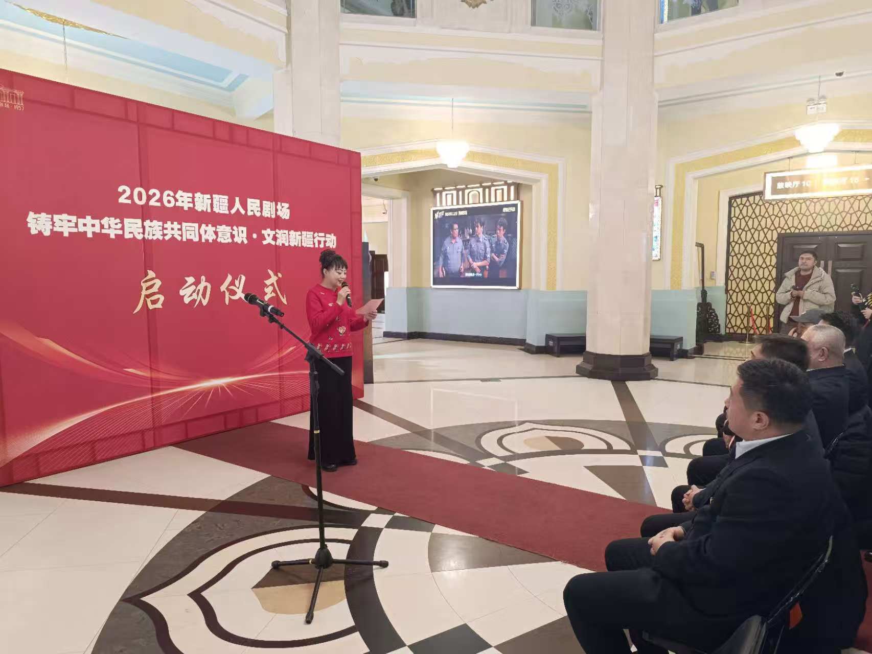 2026年新疆人民剧场“铸牢中华民族共同体意识·文润新疆行动”启动现场。石榴云/新疆日报记者 任江摄