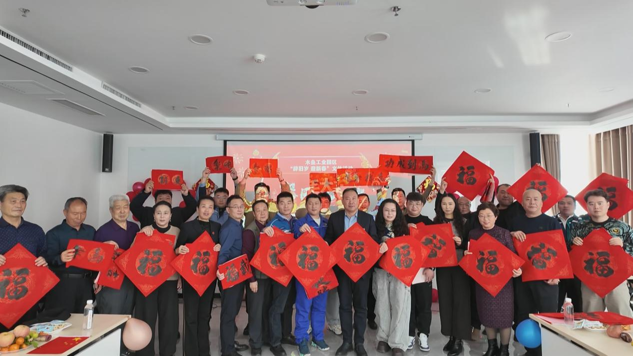 园区代表、新能源企业代表、本地企业负责人与书法家一同展示福字。王子扬 摄