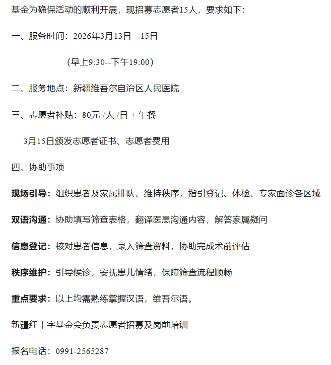 目前,嫣然天使基金已开始志愿者招募工作。招募具体内容如下: