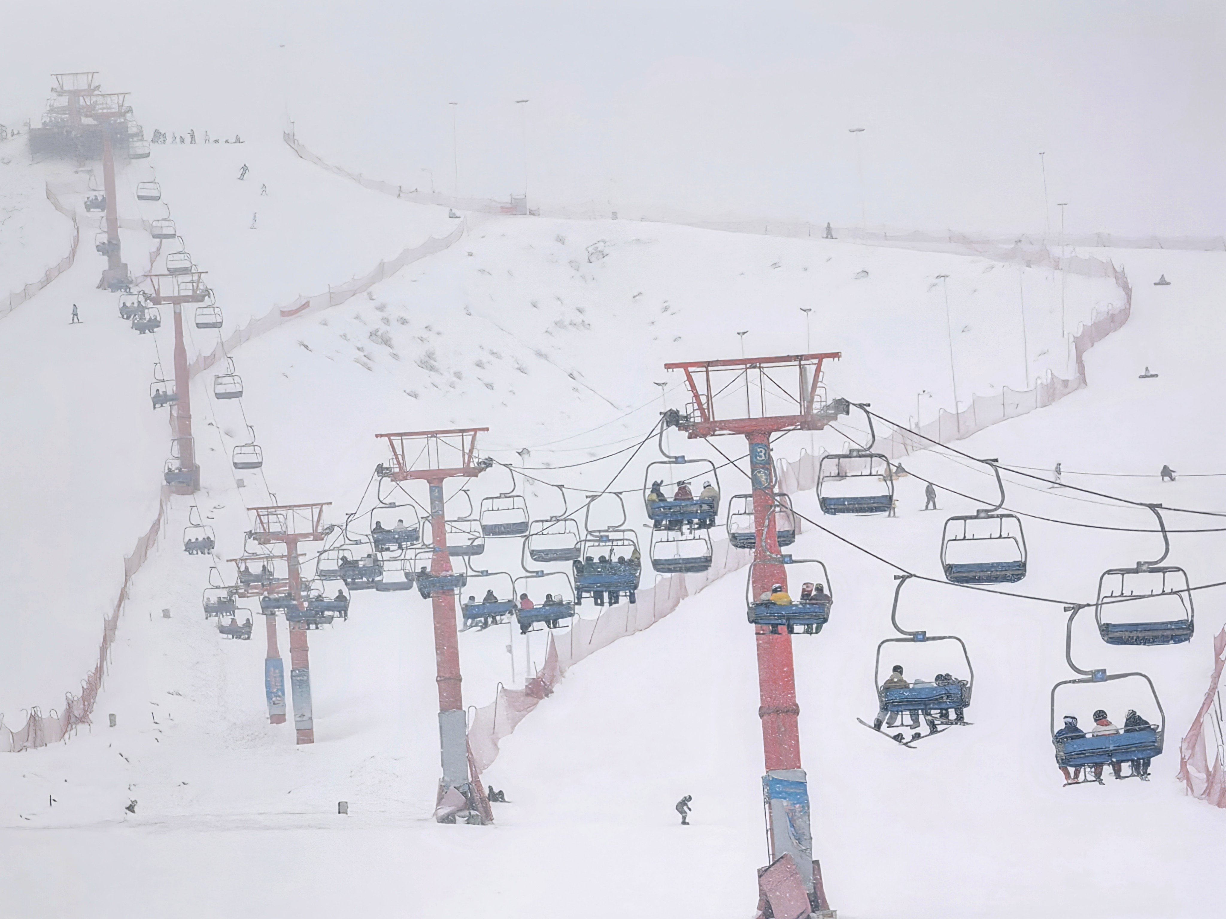 春节期间,笔者走进努尔加滑雪场,皑皑白雪覆盖群山,处处洋溢着新春的欢乐气息。初、中、高级雪道上,人头攒动却秩序井然,滑雪爱好者们身着各色滑雪服,脚踩雪板、手持雪杖,或轻盈穿梭、或稳步前行,不同年龄段、不同滑雪水平的游客,都能在这里找到属于自己的冰雪乐趣。