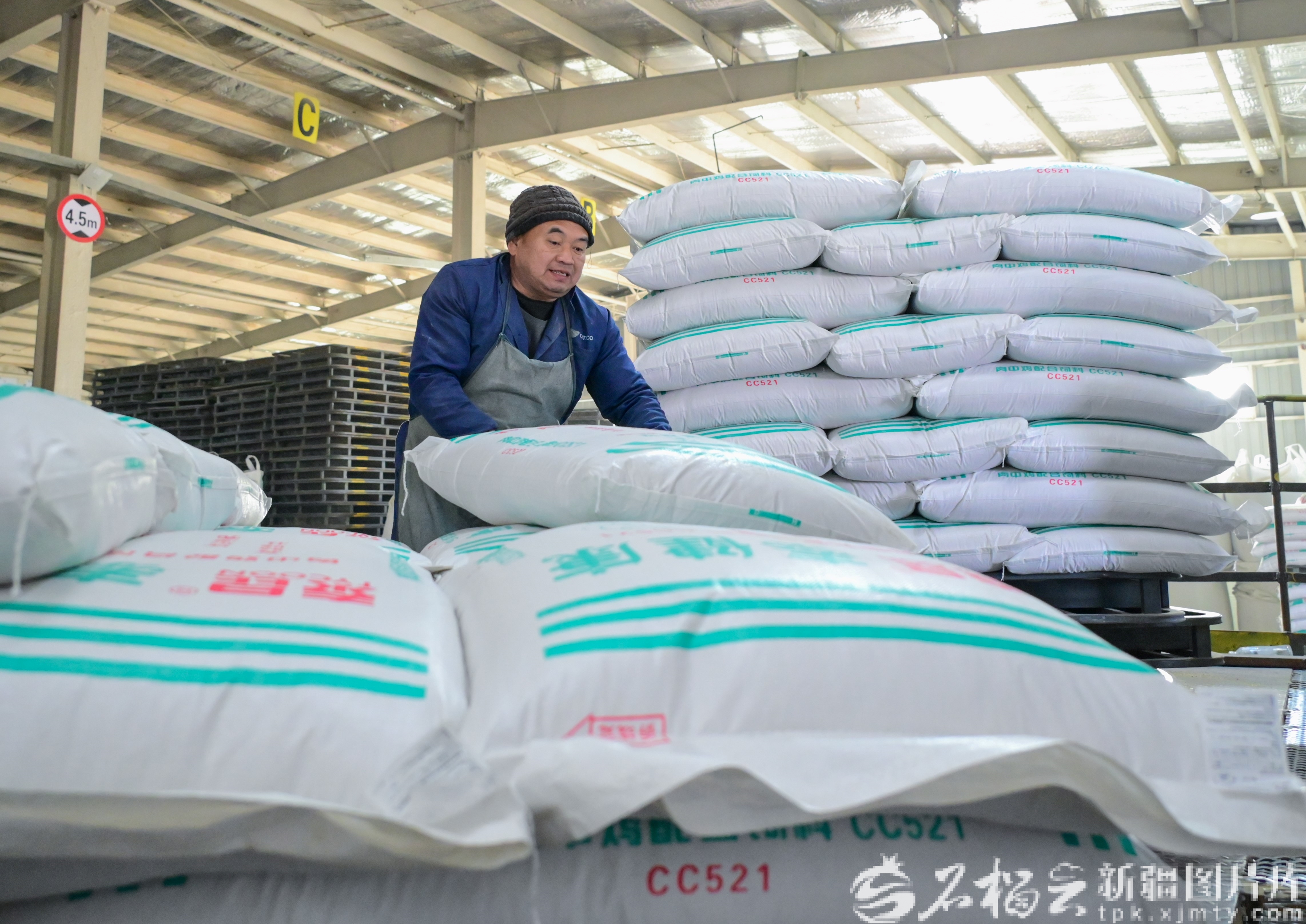 2月11日,在昌吉国家农业高新技术产业示范区的新疆泰昆集团昌吉饲料有限责任公司,成品饲料正装车外运。陶维明摄