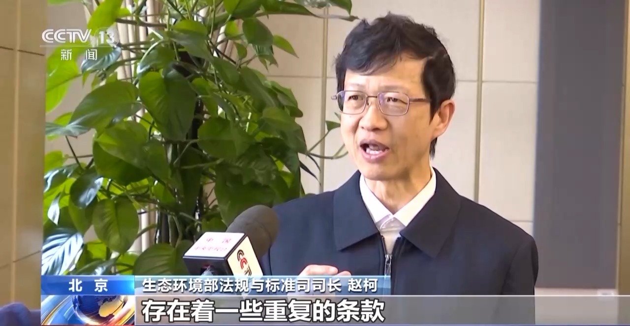 生态环境部法规与标准司司长 赵柯:在过去不同的法之间,存在着一些重复的条款,整合以后,执法人员直接就选择一条去适用,就能够很好地处理当前的环境问题。