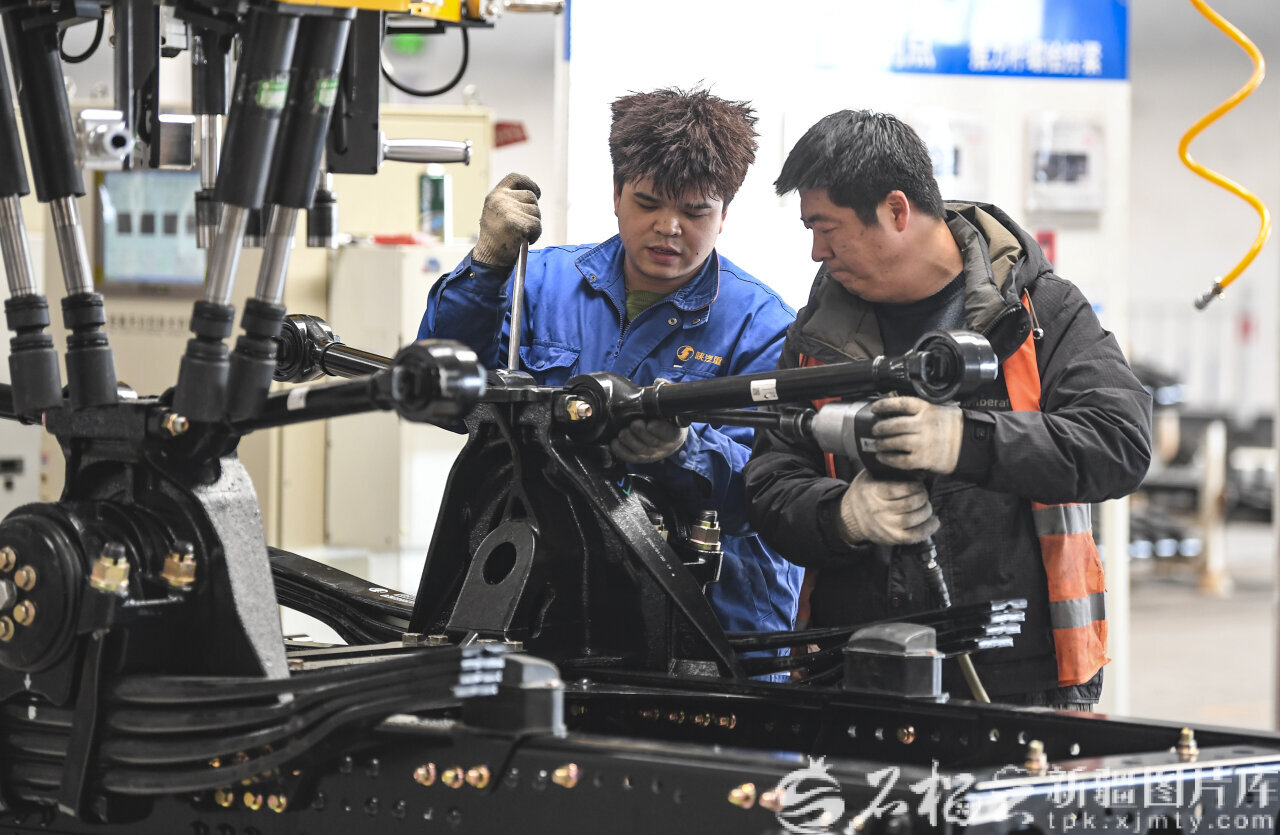 石榴云/新疆日报讯(记者 汤永摄影报道)3月16日,陕汽新疆汽车有限公司生产车间内一派热火朝天的景象:流水线旁,工人们专注地进行装配、检测,叉车往来穿梭运送零部件,机械运转的声响此起彼伏。今年以来,公司订单量已达823辆,其中出口车513辆,海外市场需求旺盛,出口同比增长362%。当前正在赶制的66辆车中,50辆将启程发往哈萨克斯坦。“从零部件采购到生产组装,全程严把质量关,让‘中国新疆制造’扬帆出海、站稳海外市场。”公司运营中心主任杨小龙指着即将下线的车辆介绍道。随着这批出口车辆陆续下线,企业迎来出口“开门红”,既为全年生产开好局、起好步,也彰显了本地汽车制造业在国际市场上的竞争力与发展潜力。