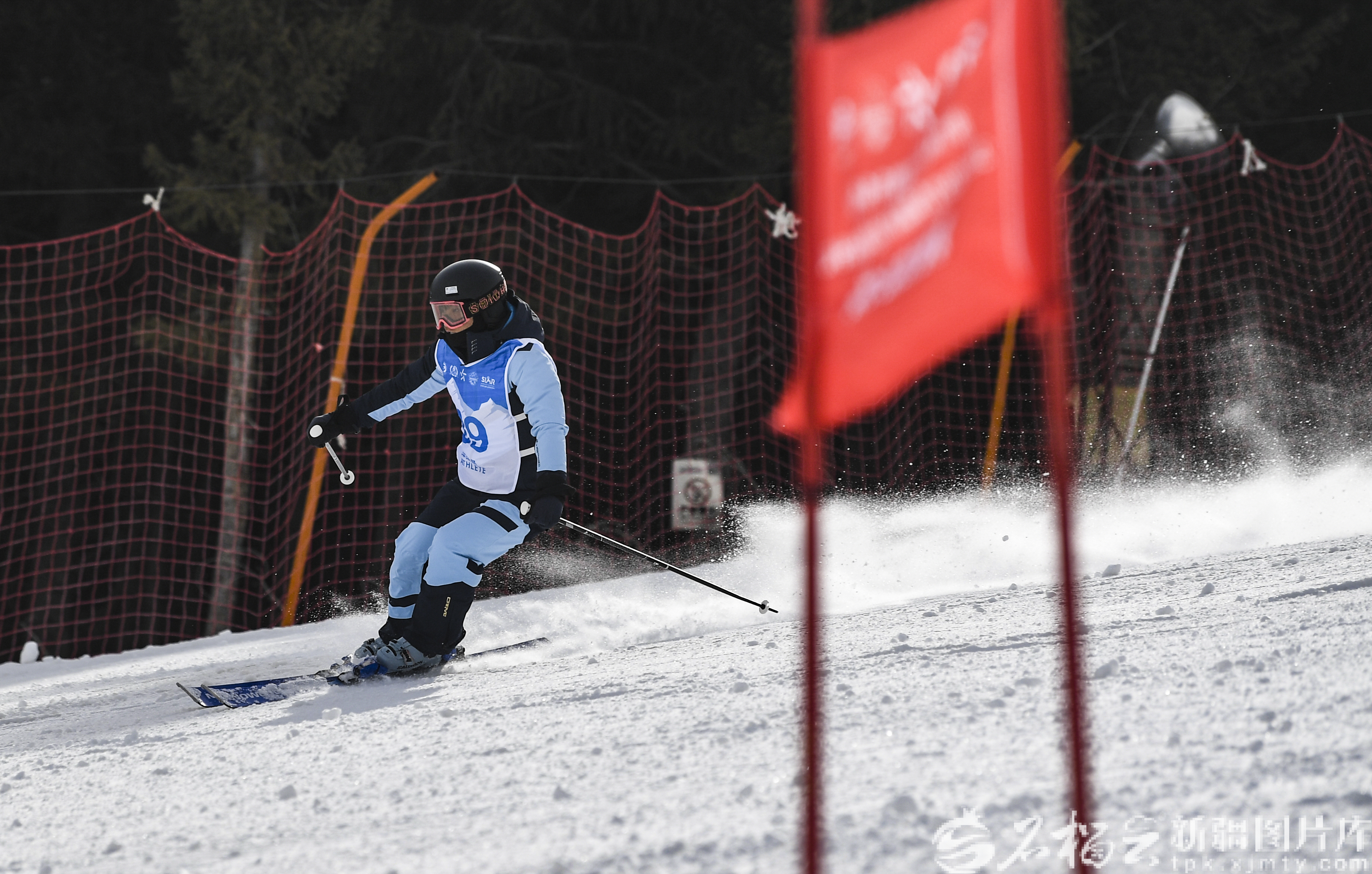3月18日,滑雪社会体育指导员双板个人滑行技能比赛在艾文大道开赛。