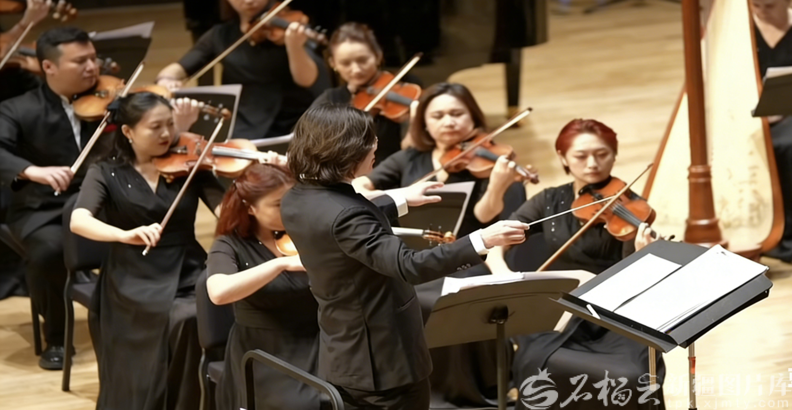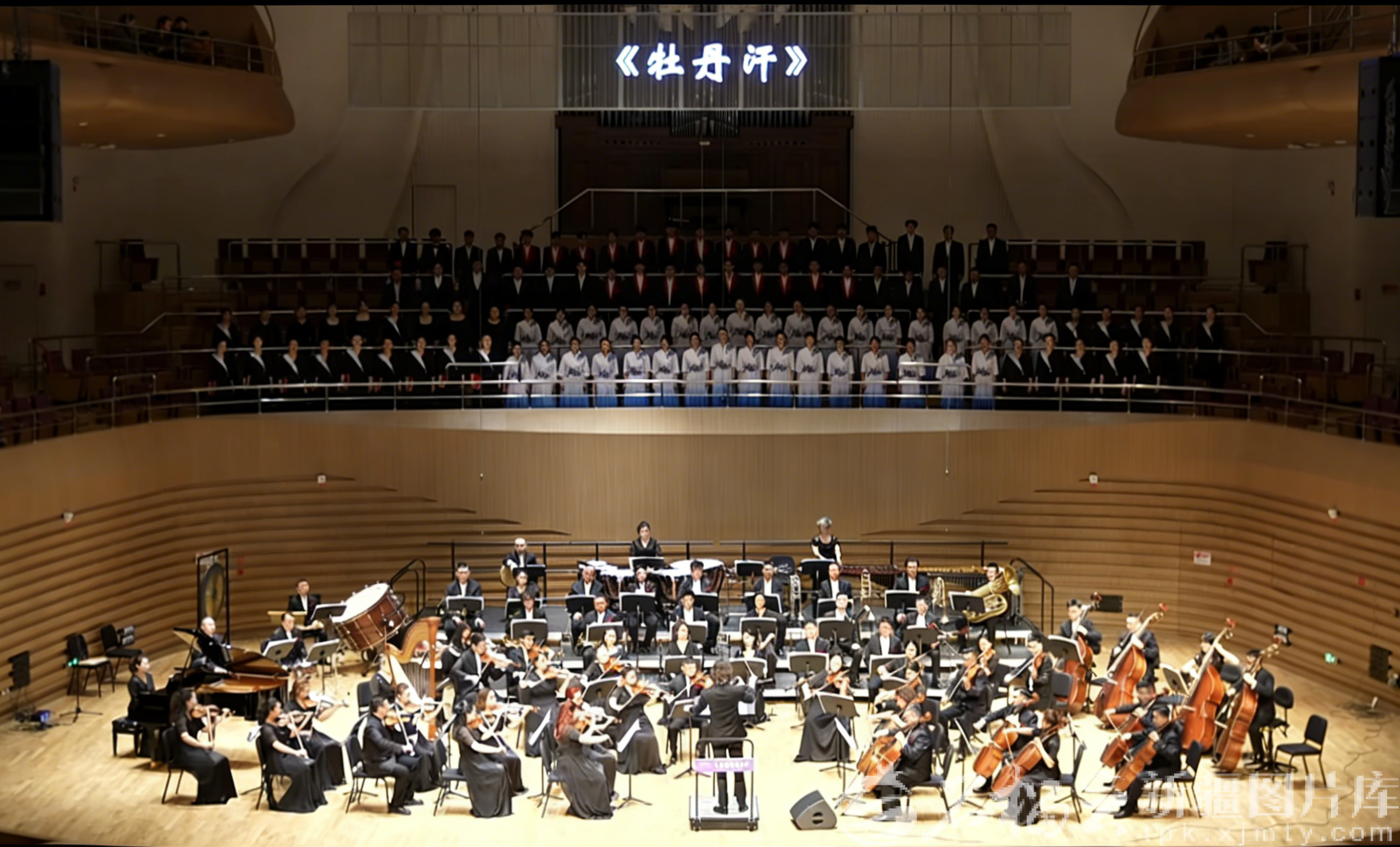 在乌鲁木齐文化中心,“唱着民歌游新疆”王洛宾经典民歌交响音乐会演出现场。石榴云/新疆日报记者 宋海波摄