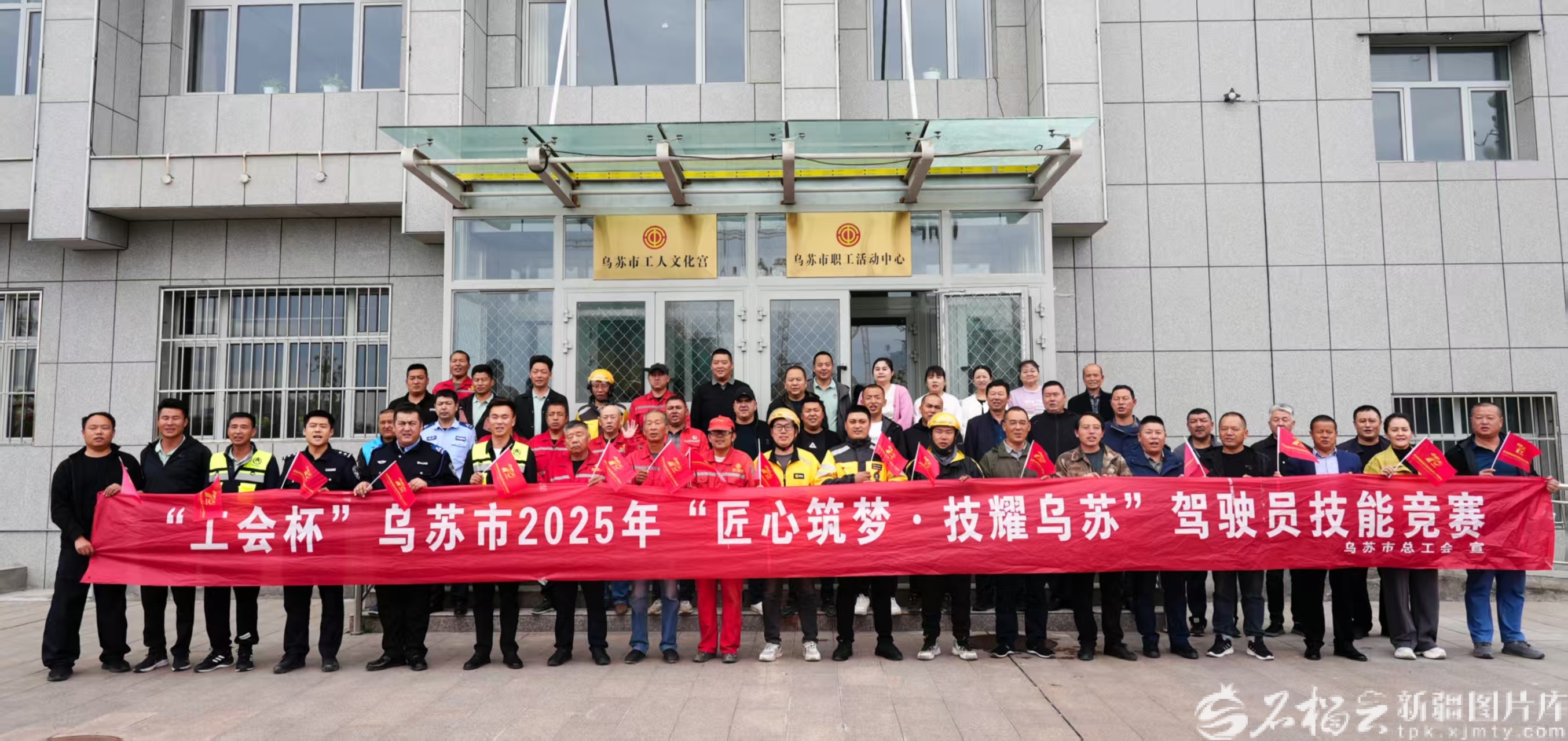 乌苏市开展的驾驶员技能竞赛选手合影。自治区总工会供图