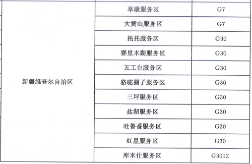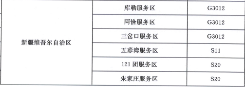 一级服务区名单(新疆部分)
