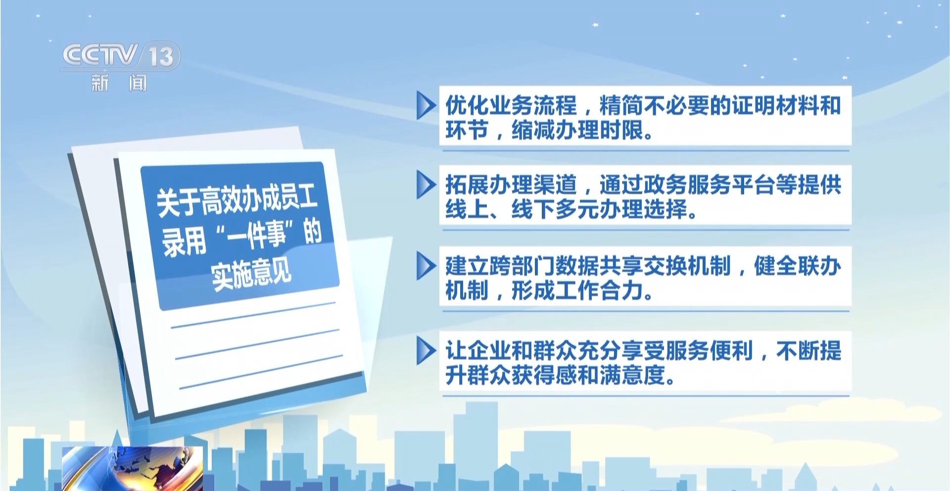 近日,人力资源社会保障部办公厅、住房城乡建设部办公厅、国家医保局办公室联合印发《关于高效办成员工录用“一件事”的实施意见》。将员工录用相关的多项关联业务整合为“一件事”办理,通过减环节、减材料、减时限、减跑动,实现一站式联办,大幅方便企业和群众。