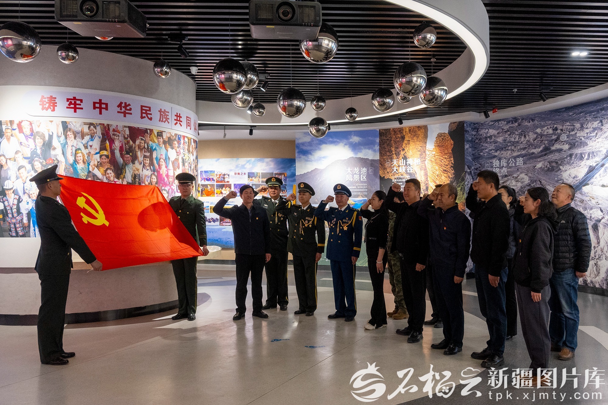 4月1日,在独山子烈士陵园,奎屯市退役军人事务局党组牵头组织了“追寻·2026·清明祭英烈”主题祭扫活动。图为党员在独库公路博物馆重温入党誓词。图片由奎屯市退役军人事务局提供