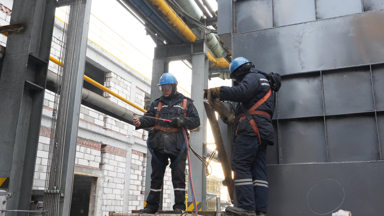 2023年,二期煤气站二号楼主五楼软连接设备锈蚀破损急需抢修,经多方研究讨论后决定使用钢板对管道进行包围修复,对于付明友和班组同事来说,这样大的工作量对于他们是一场不小的挑战。但付明友与工友没有退缩,在室内平均温度70摄氏度的情况下分组轮番上阵,以每人两根焊条焊完为限接力工作,最终圆满完成抢修任务,守护了车间正常的生产工作。