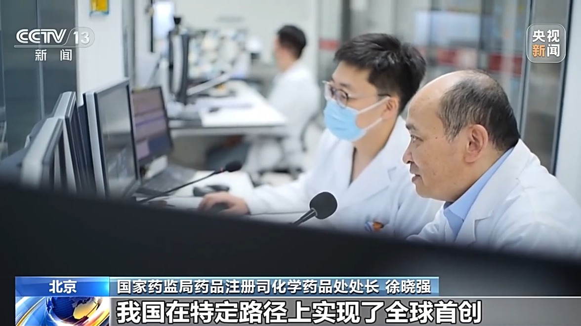 国家药监局药品审评中心一部主审审评员 周浩辉:这款药物主要用于肺癌患者淋巴结转移的辅助诊断,是我国首个完全自主研发的放射性1类创新药,在全球范围内是属于首个针对特定靶点的放射性显像剂,这款药物的获批上市,标志着我国在核药领域实现了从0到1的原创性突破。