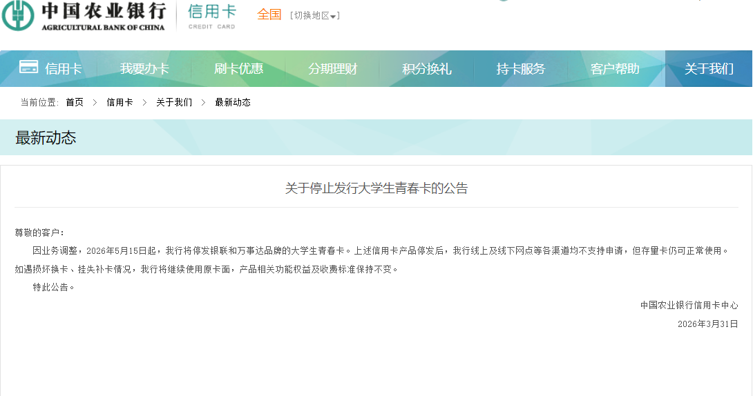 A+ A. A-近期,多家银行接连发布公告,宣布停止发行部分信用卡产品,涉及国有大行、股份制银行及地方银行,停发产品以联名信用卡为主,同时涵盖部分主题信用卡。
