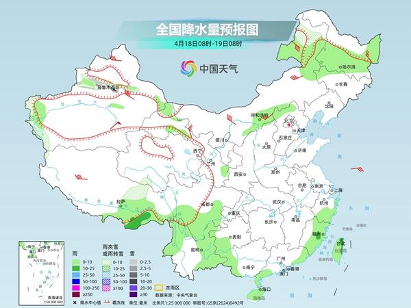 A+ A. A-今天(4月18日),南方降雨将进一步减弱,江南多地有望迎来放晴,北方多地气温将会冲击30℃。不过,明天起受冷暖空气影响,中东部地区将出现大范围降雨过程,南方局地会有强对流天气,北方局地则伴有强降雪。同时,随着冷空气东移南下,今起三天北方至长江中下游等地气温陆续明显下降,冷暖转换快速,需适时调整着装。
