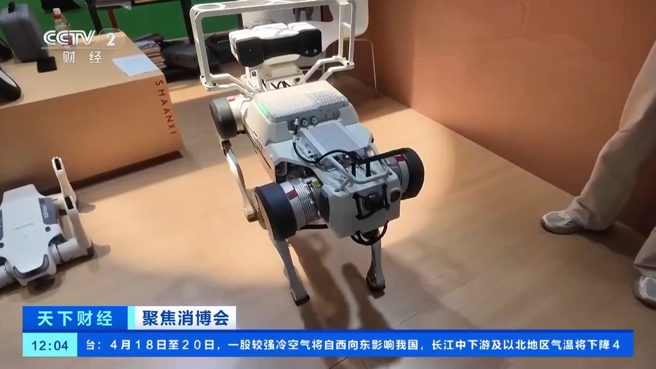 在本届消博会的国货精品展区,陕西馆带来了智能巡检机器狗、VR眼镜、XR影院系统等前沿科技产品,这和他们前几届消博会以文创IP、食品特产为主的展品布局有了明显区别。而这样的展品变化也是今年地方展馆的共性。