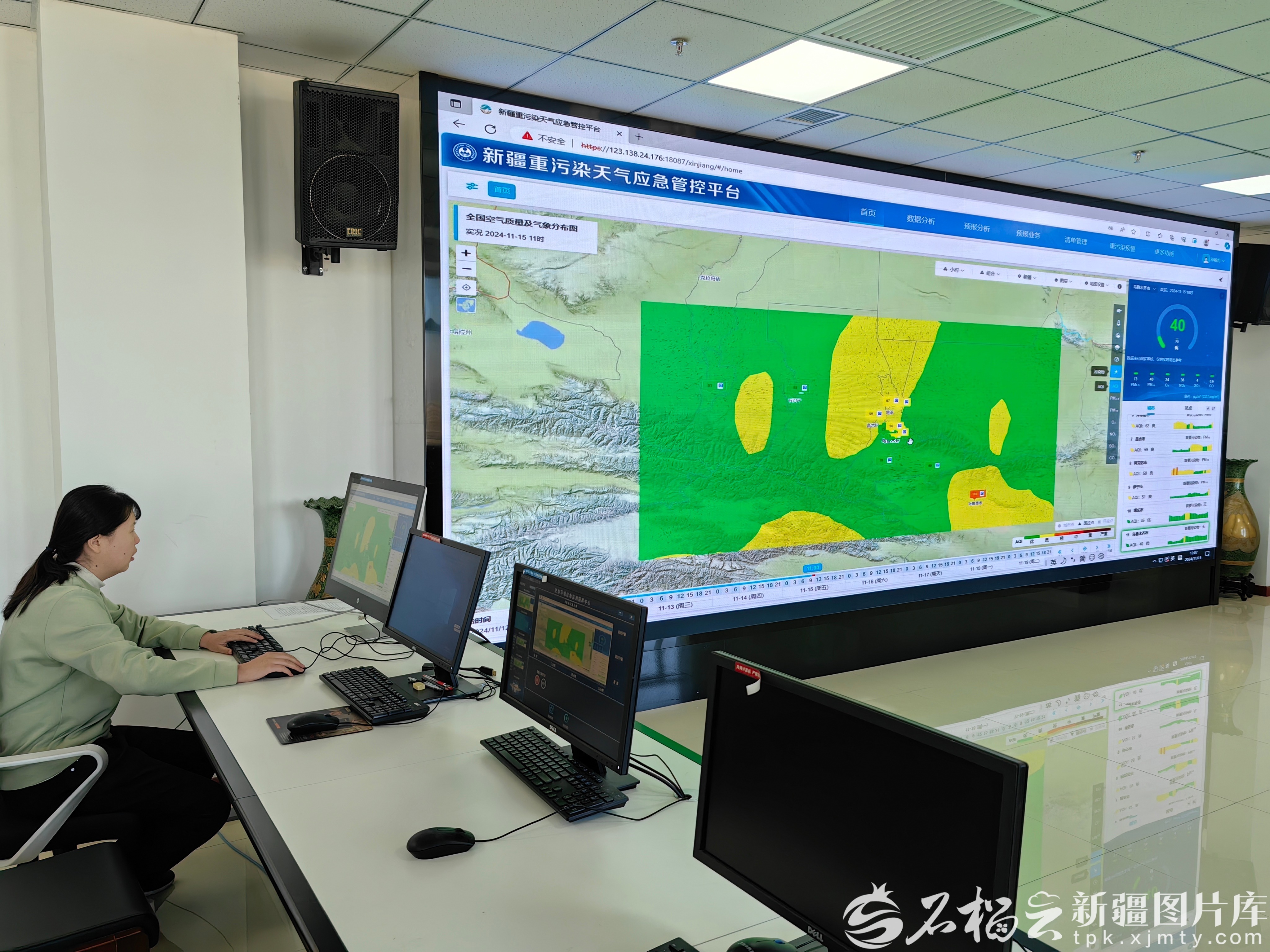 自治区环境监测总站,工作人员在自治区重污染天气应急管控平台上查看“乌-昌-石”区域空气质量情况。该平台全天24小时实时显示着全疆各地空气质量情况。(资料图)
