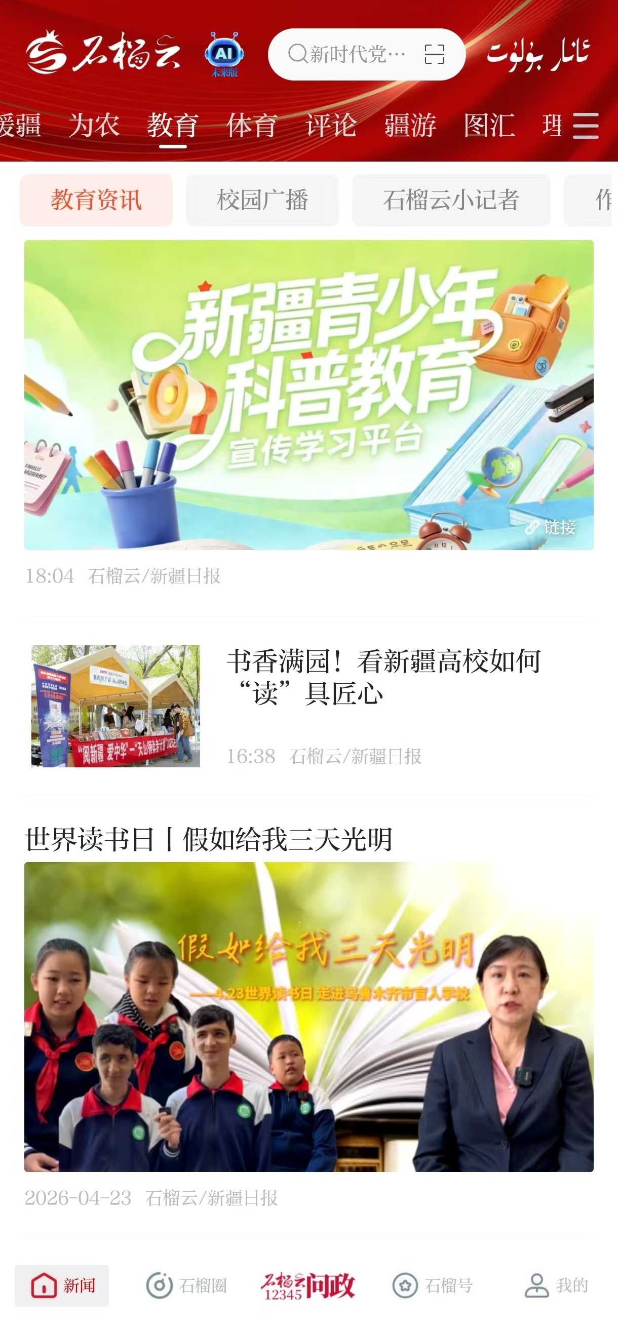 由新疆日报社(集团)、自治区教育厅、自治区团委联合打造的新疆青少年科普教育宣传学习平台在石榴云客户端正式上线啦!这是一座贯通校园与社会的科普桥梁。不管你是充满好奇心的探索者、实验小能手,还是教育机构、科创分享达人,在这个科学乐园里都能找到属于自己的精彩,一起为新疆的科技梦想注入能量。