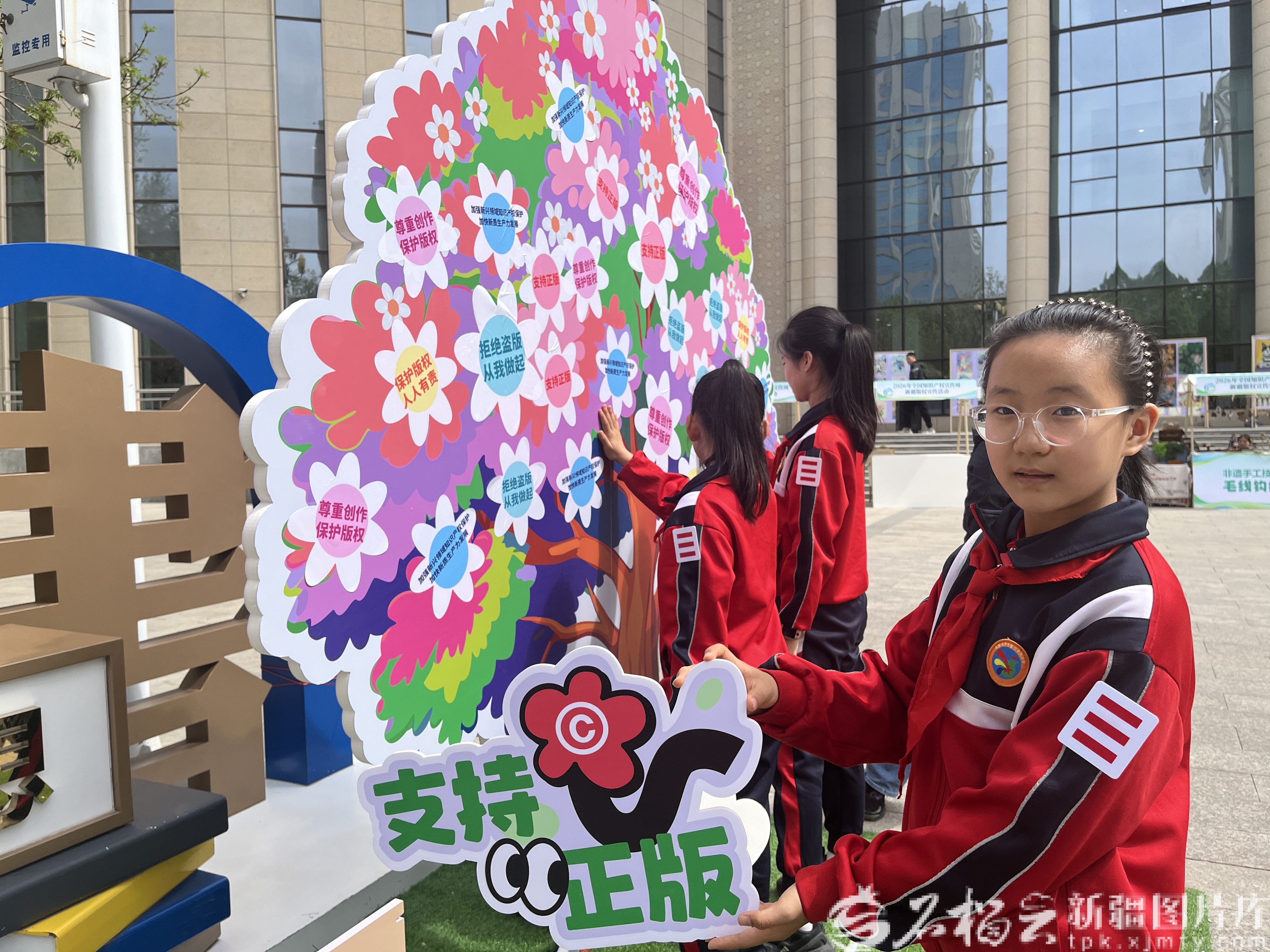 4月24日,在2026年全国知识产权宣传周新疆版权宣传活动现场,小学生参与版权保护活动。 石榴云/新疆日报记者 任春香摄