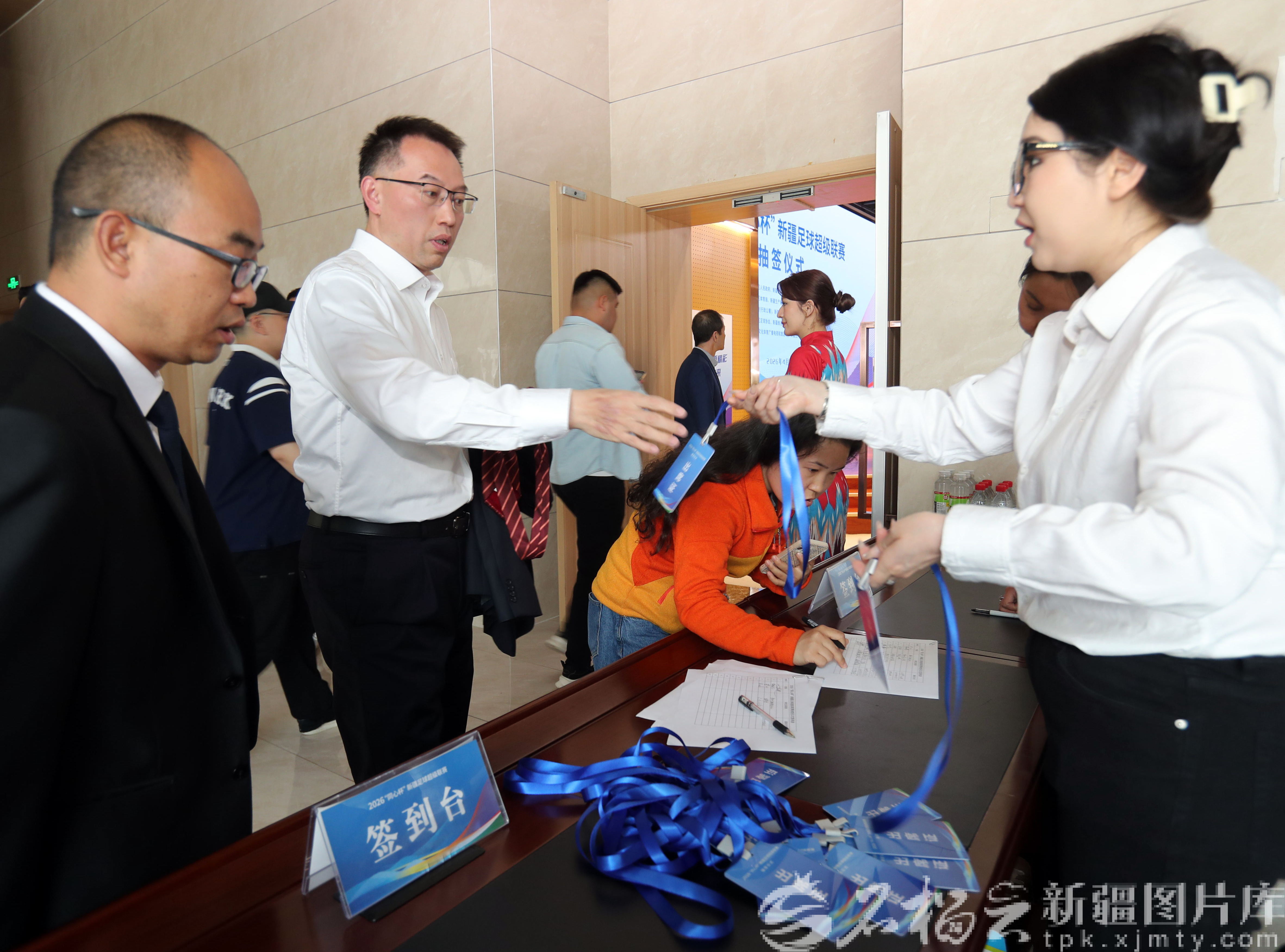 4月25日,参加2026“同心杯”新疆足球超级联赛抽签仪式的代表签到。