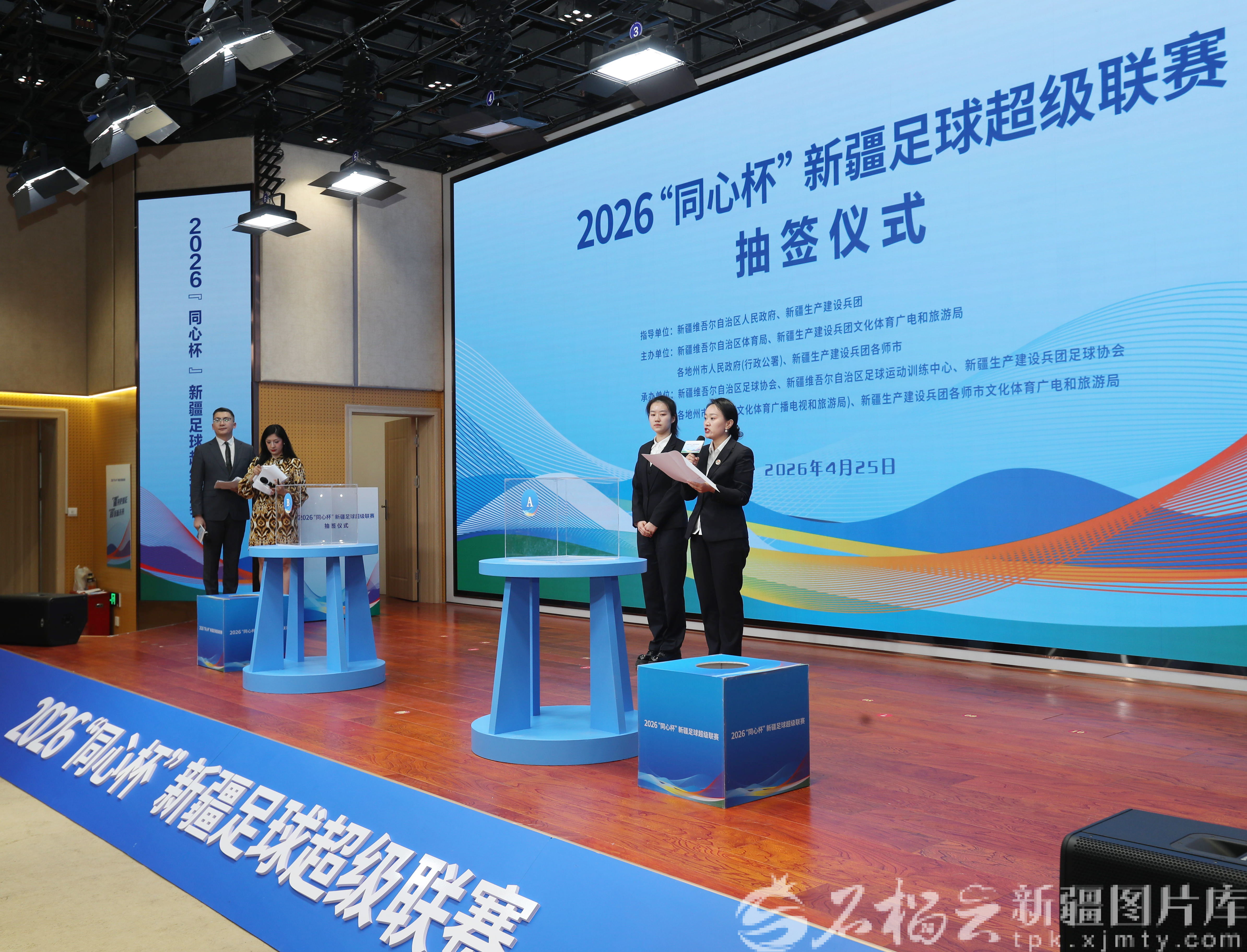 4月25日,2026“同心杯”新疆足球超级联赛抽签仪式现场。