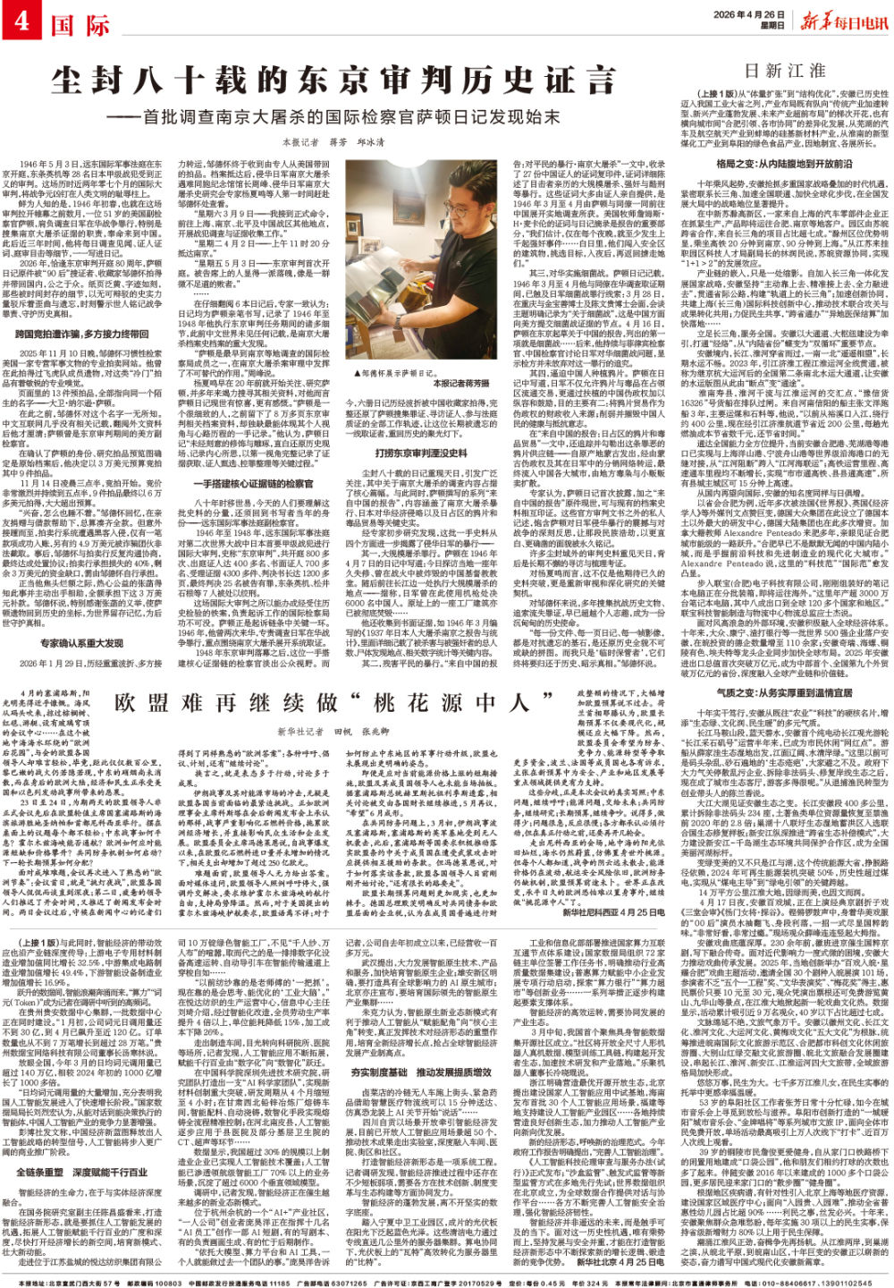 2026年,恰逢东京审判开庭80周年,萨顿日记原件被“90后”搜证者、收藏家邹德怀拍得并带回国内,公之于众。纸页泛黄、字迹如刻,那些被时间封存的细节,以无可辩驳的史实力量驳斥着歪曲与遗忘,时刻警示世人铭记战争罪责、守护历史真相。