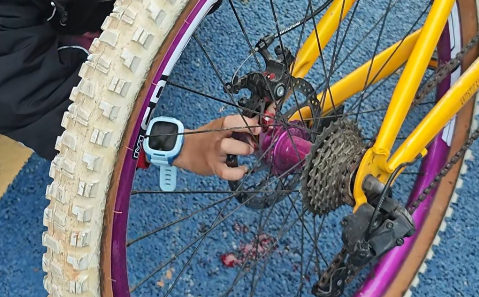 被自行车后齿轮死死卡住