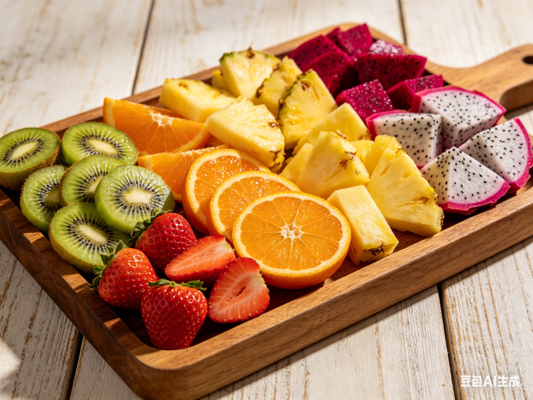 水果通常含糖较高,建议选含糖量低、不同颜色的水果,其中深色水果营养更丰富。注意:果汁代替不了新鲜水果,即使榨汁也别滤掉渣,能保留膳食纤维;少吃果干、罐头、蜜饯这类加工水果。